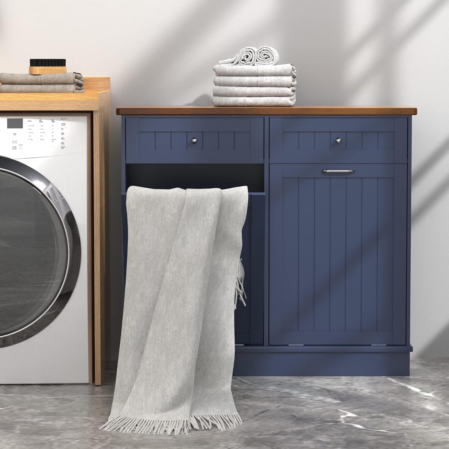 Betterhood Tilt Out Trash Cabinet 10 Gallon Wooden Free Standing Laundry Sorter Cabine,Recycling Cabine with Hideaway Drawer,Tilt Out Trash Cabinet Can Bin Kitchen