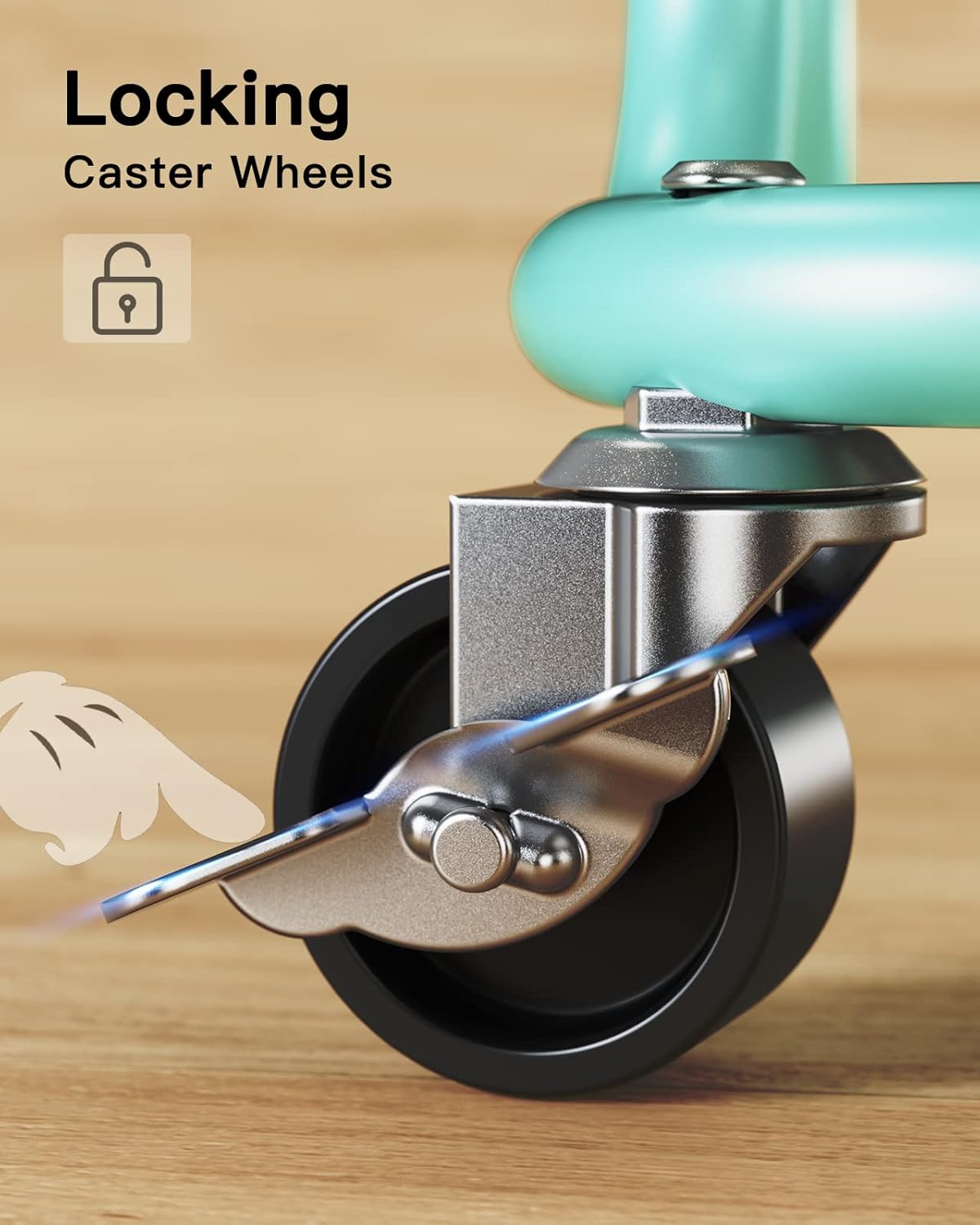 Pipishell 3-Tier Metal Rolling Utility Cart, Heavy-Duty Storage Cart with 2 Lockable Wheels, Multifunctional Mesh Organization Cart for Kitchen Dining Room Living Room (Turquoise)