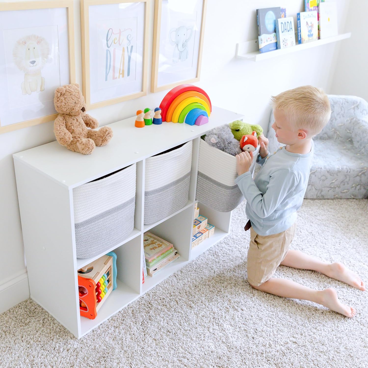 - Safe, Natural Cotton Storage Basket: Crafted from the highest quality material in the market, our toy bins are oh-so-sturdy and ready to take on little humans with a knack for nom-ing. Theyâre 100% safe, so you can rest easy if teething toddlers take a nibble.