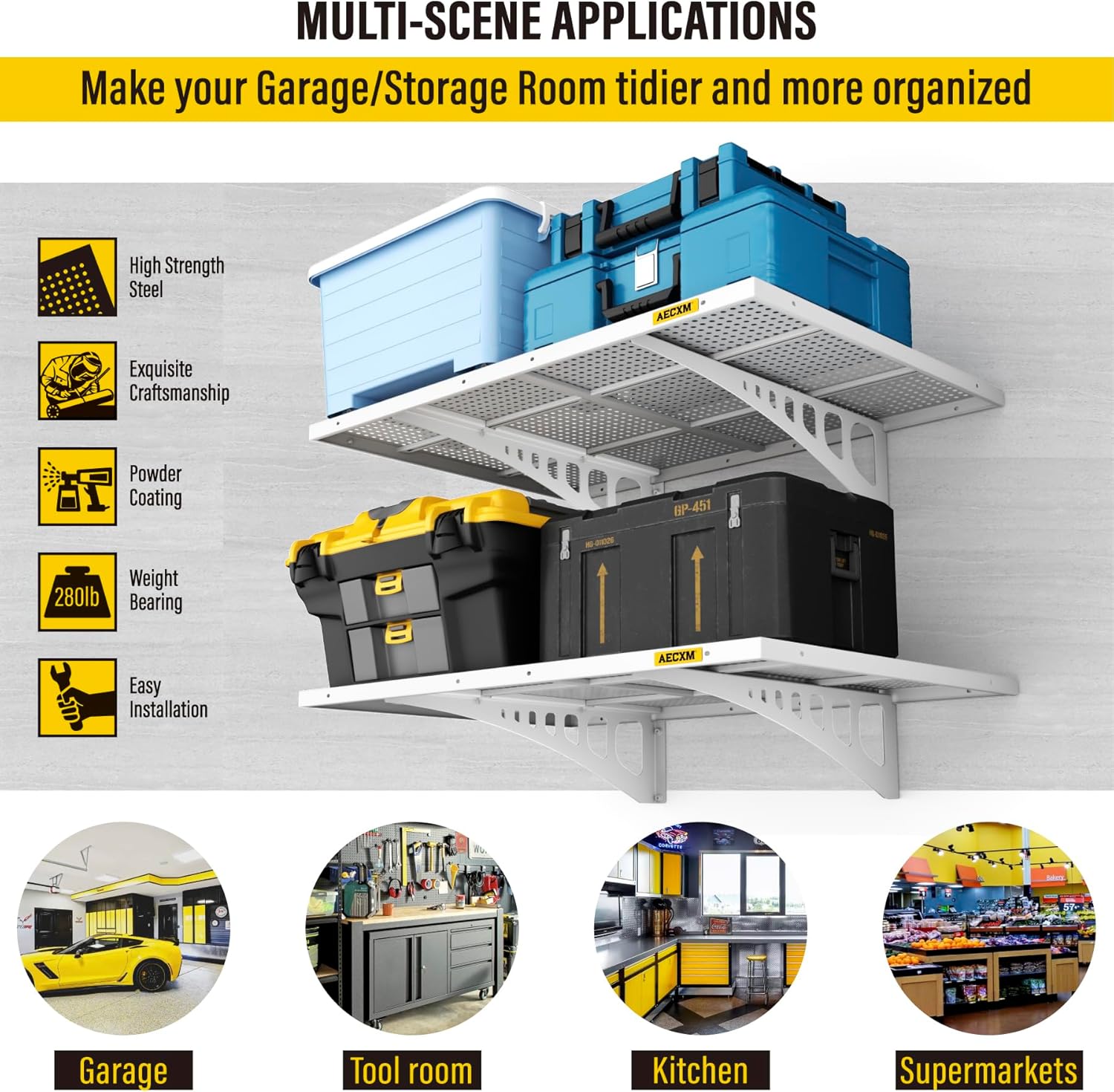 - Premium Craftsmanship: This garage wall shelving is crafted from a single steel sheet, precision-stamped and folded for strength. Unique high-density hole design enhances functionality while delivering a sleek, modern aesthetic