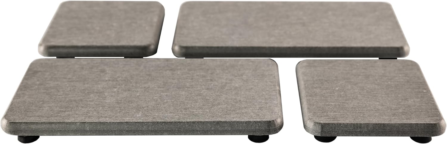 - Product A Size: 3.15 inch * 3.15 inch * 0.35 inch (8cm * 8 cm * 0.9 cm); Product B Size: 6.3 inch * 3.15 inch * 0.35 inch (16cm * 8 cm * 0.9 cm) Each package included: Product A*2; Product B*2;Sandpaper*1; Manual*1; Silicone non-slip mat*16. Tray Color: Gray