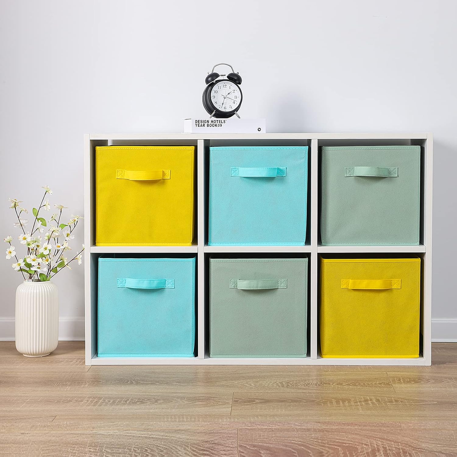 Stero 13x13x13 Inch Fabric Storage Bins 6 Pack Fun Colored Storage Cubes with Handles Foldable Cube Baskets for Home, Kids, Closet and Toys Organizer, Cyan, Green, Yellow