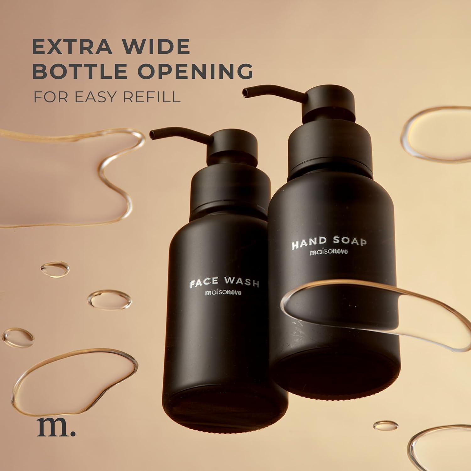 - This Set Includes: The MaisoNovo glass foam pump bottle set includes: two (2) 14oz foaming dispensers, and four (4) waterproof face wash and hand soap labels.