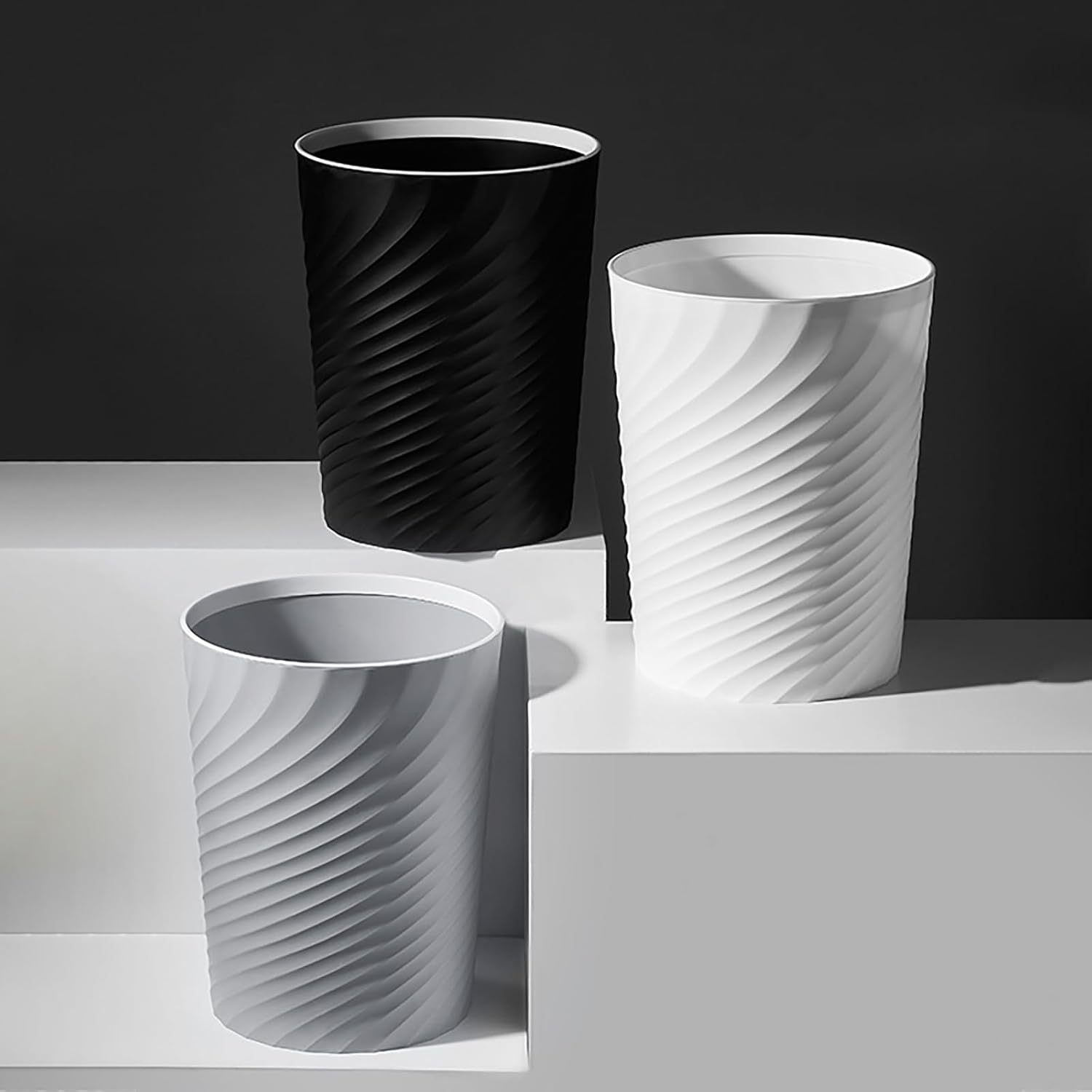 - Home Decoration: Screw thread shape design and white color, adding a modern touch to any space. The wastebasket is great for bathroom office bedroom college dorms, apartments and RVs.