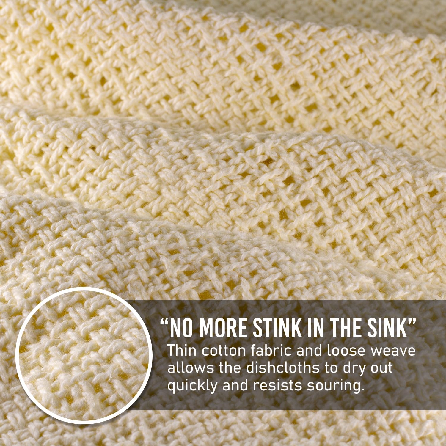 Old Fashion 100% Cotton Dishcloths - Set of 4 Mixed Colors - 2 Yellow/2 White -11" x 11"