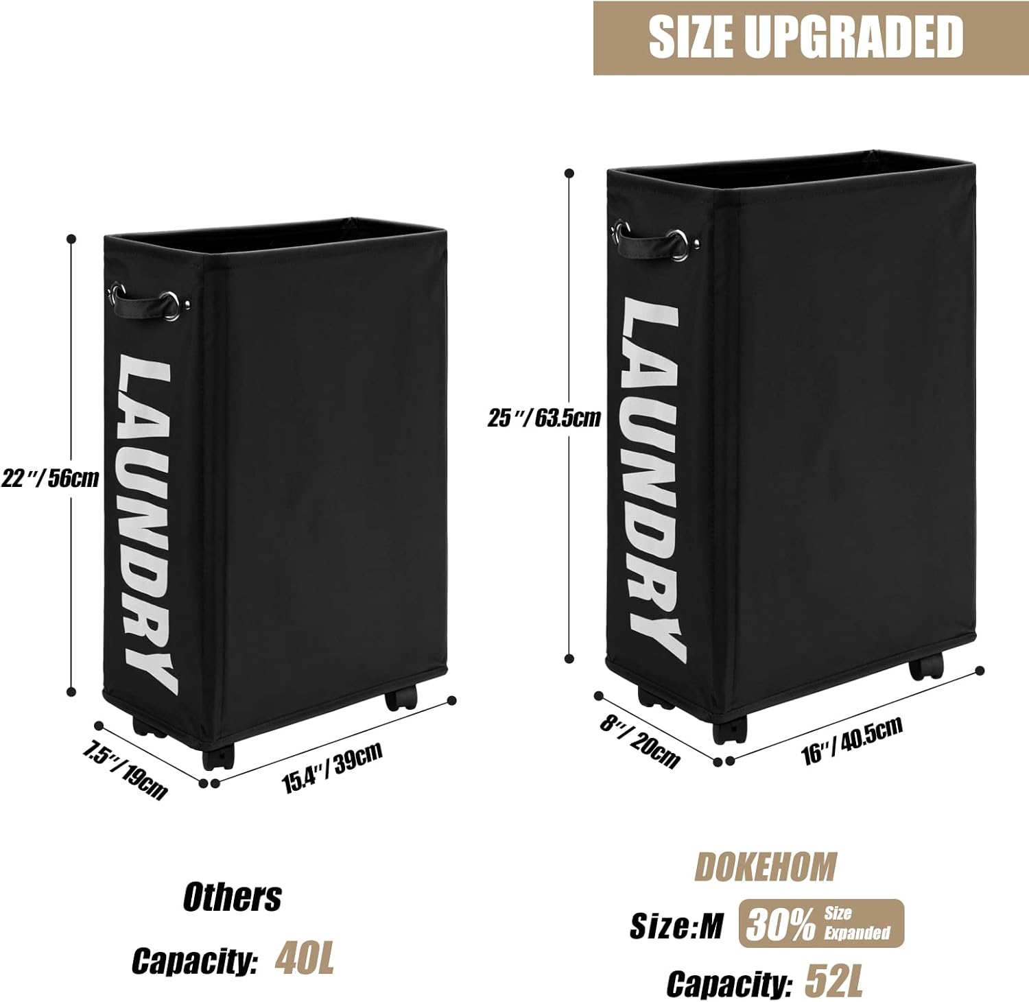 DOKEHOM 25-Inches Slim Laundry Basket on Wheels, Collapsible Rolling Laundry Hamper, Foldable Narrow Corner Clothes Storage Bins (Black)