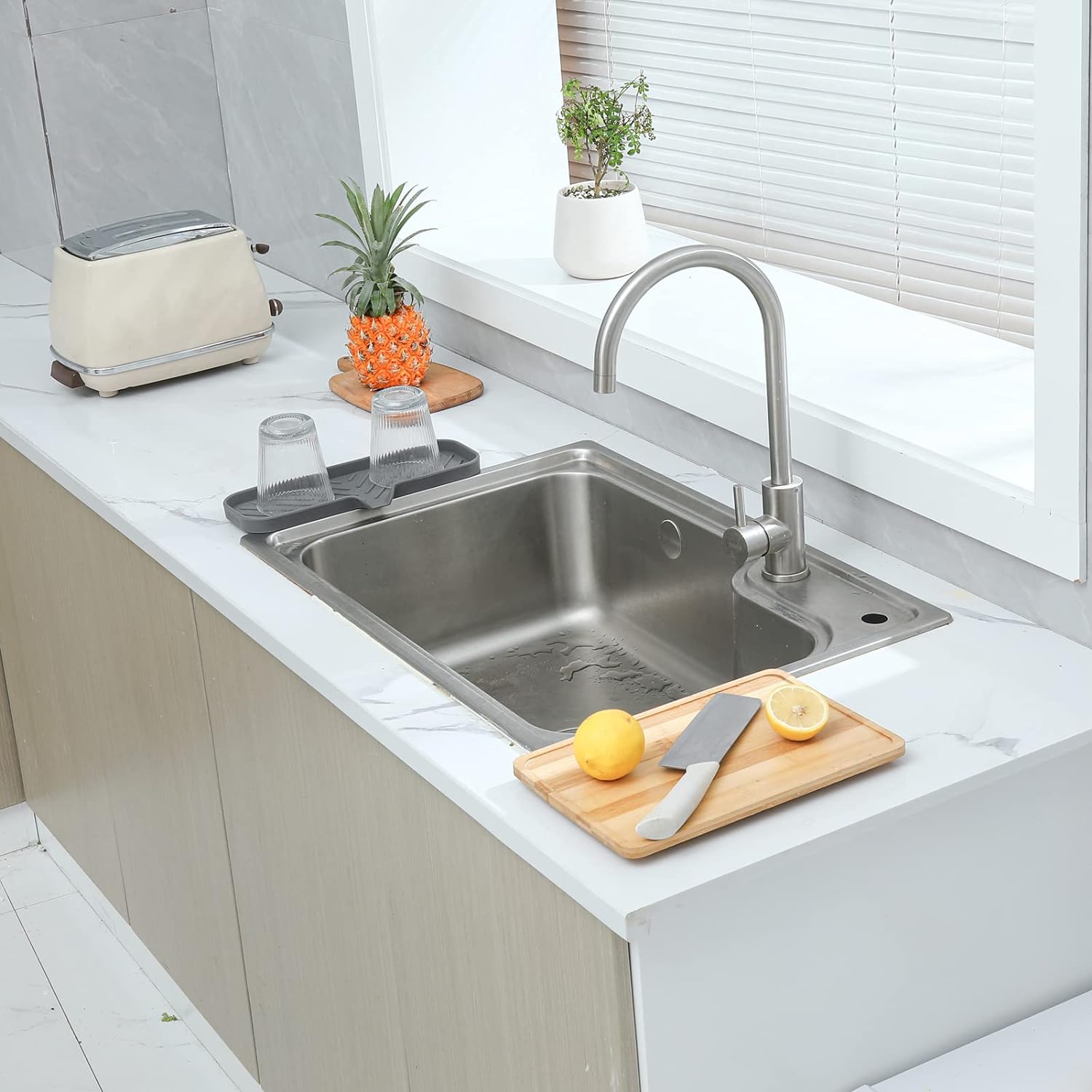 - Food Grade Silicone: The soap dispenser tray is made from high-quality food grade silicone, so it's safe for use in the kitchen or bathroom