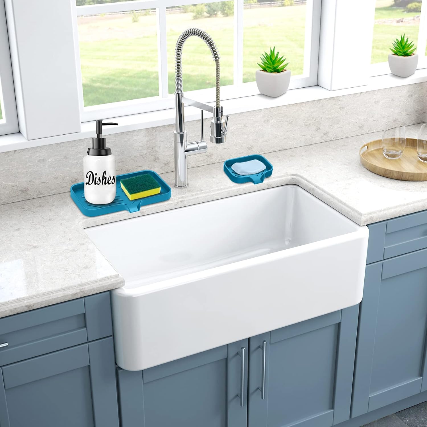 - New Upgraded Kitchen Soap Tray: After analyzing the advantages and disadvantages of many similar products, we made important upgrades in many details for our silicone kitchen sponge holder. The unique design and premium silicone material are suitable for any countertop, it helps keep the counters dry and organized. This silicone tray is non slip and easy to clean. The upgraded self-draining design will drain the water faster. Choosing us will bring more convenience to your life!