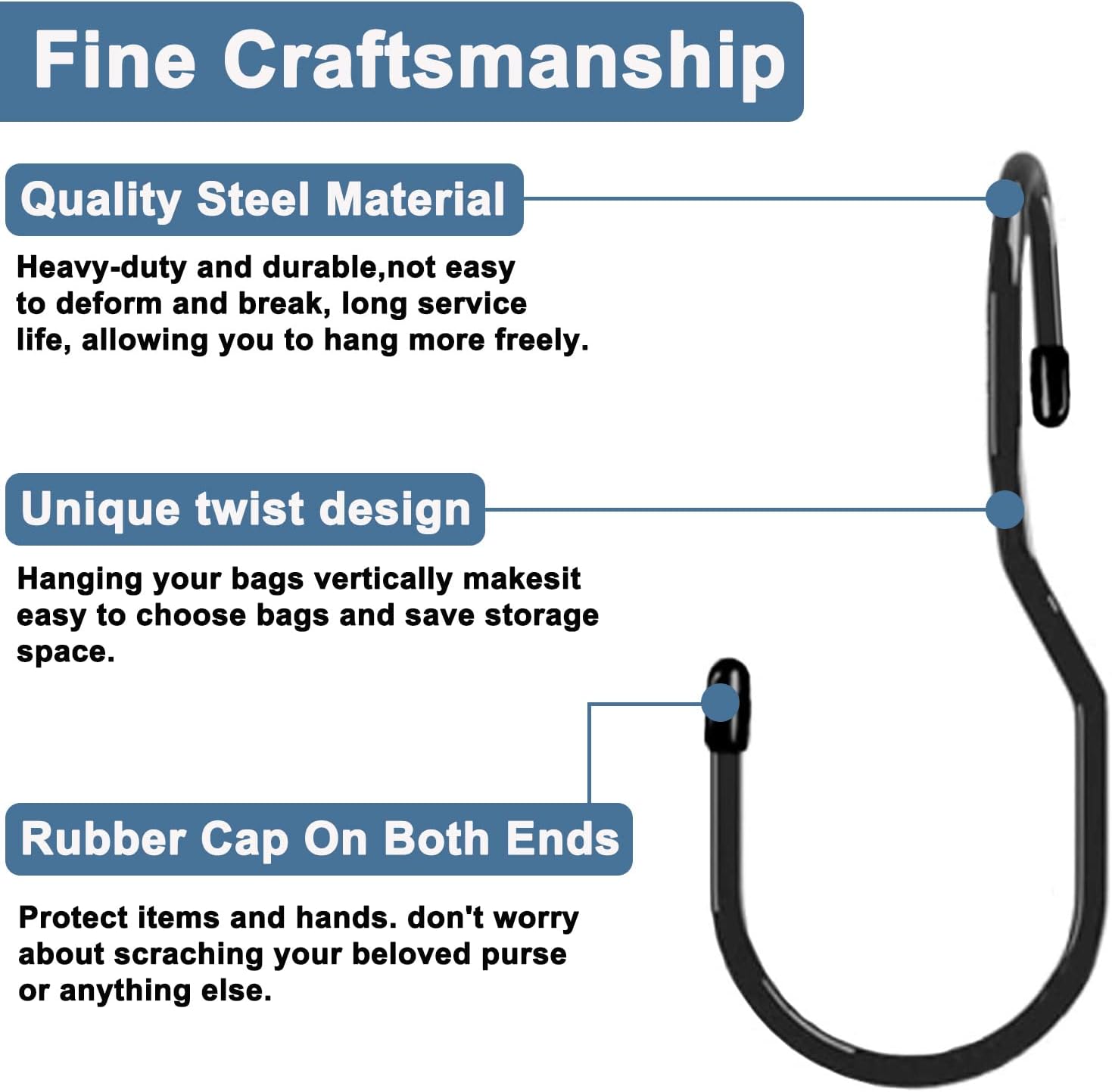 - 【Improved design S hook】Purse hooks for closet is twisted on the conventional S hook, saving more space.