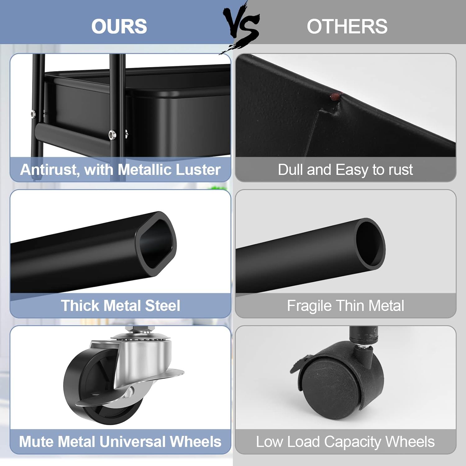- Multifunctional Rolling Cart: Our utility cart serves multi purposes, suitable for virtually any application and any room. It can be snack cart, tool cart, service cart, book cart, or organization rack in your kitchen, bedroom, laundry room, bathroom, living room, office, garage, and workshop, etc.