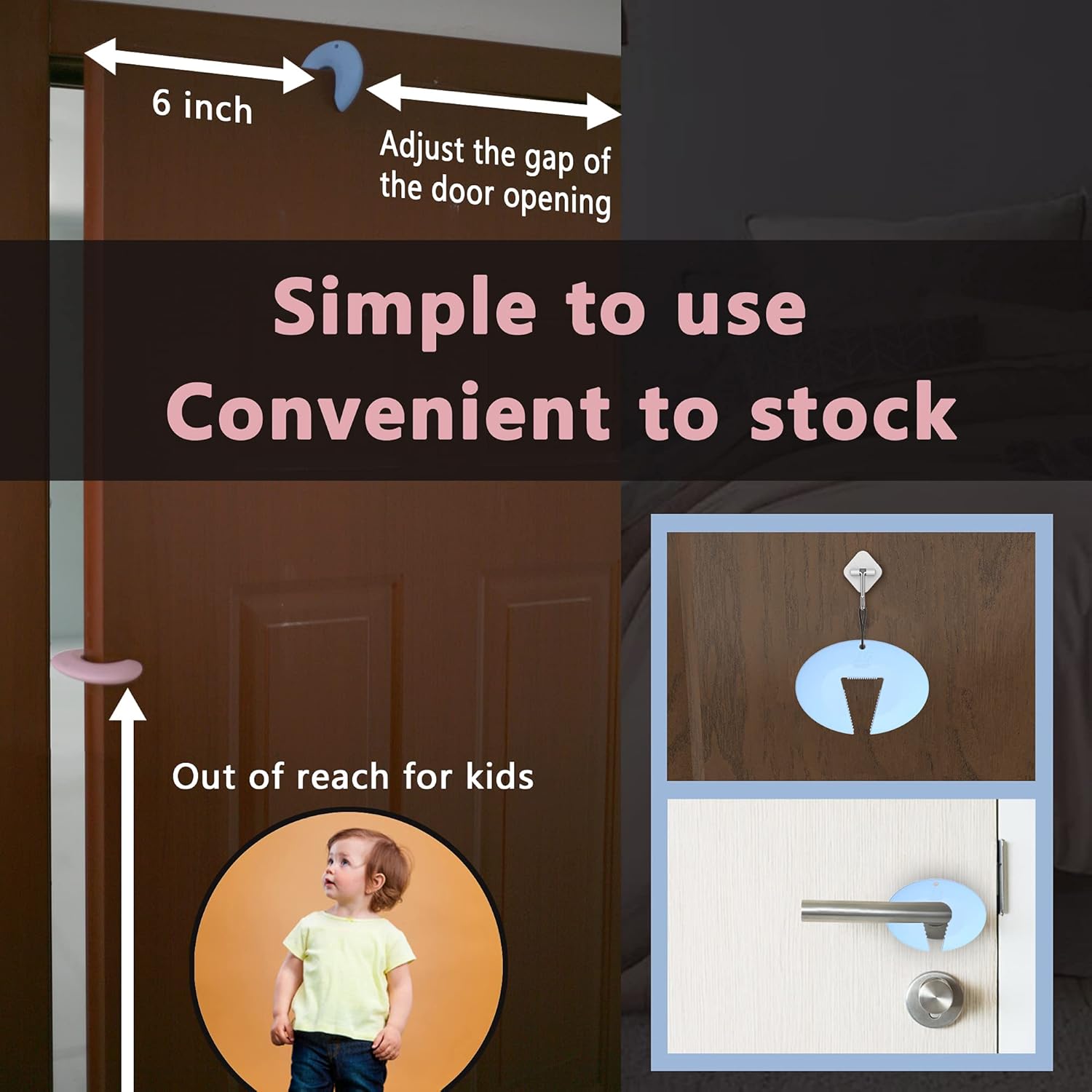 - πππππππππππ πππππποΌDoor Baby Proofing Flexible C Shape makes it easy to attach and fits around any size door. The door slam stopper Innovative 'teeth' make the Guard and door combination more stable, therefore it will not fall off even with a strong slam.