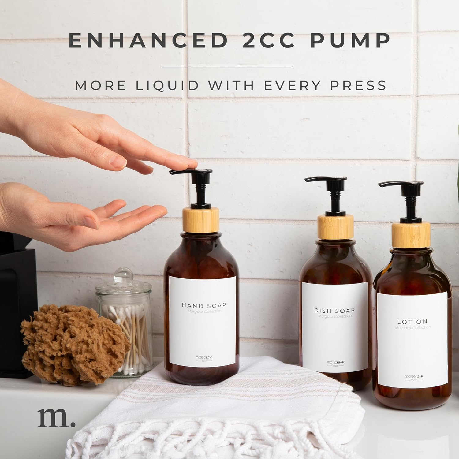 - Waste Reduction: Minimize waste with our lotion dispenser with pump bathroom containers. These sleek empty shampoo bottles reduce environmental impact while adding elegance to your space. A soap and lotion dispenser bathroom set that doesn’t compromise style!
