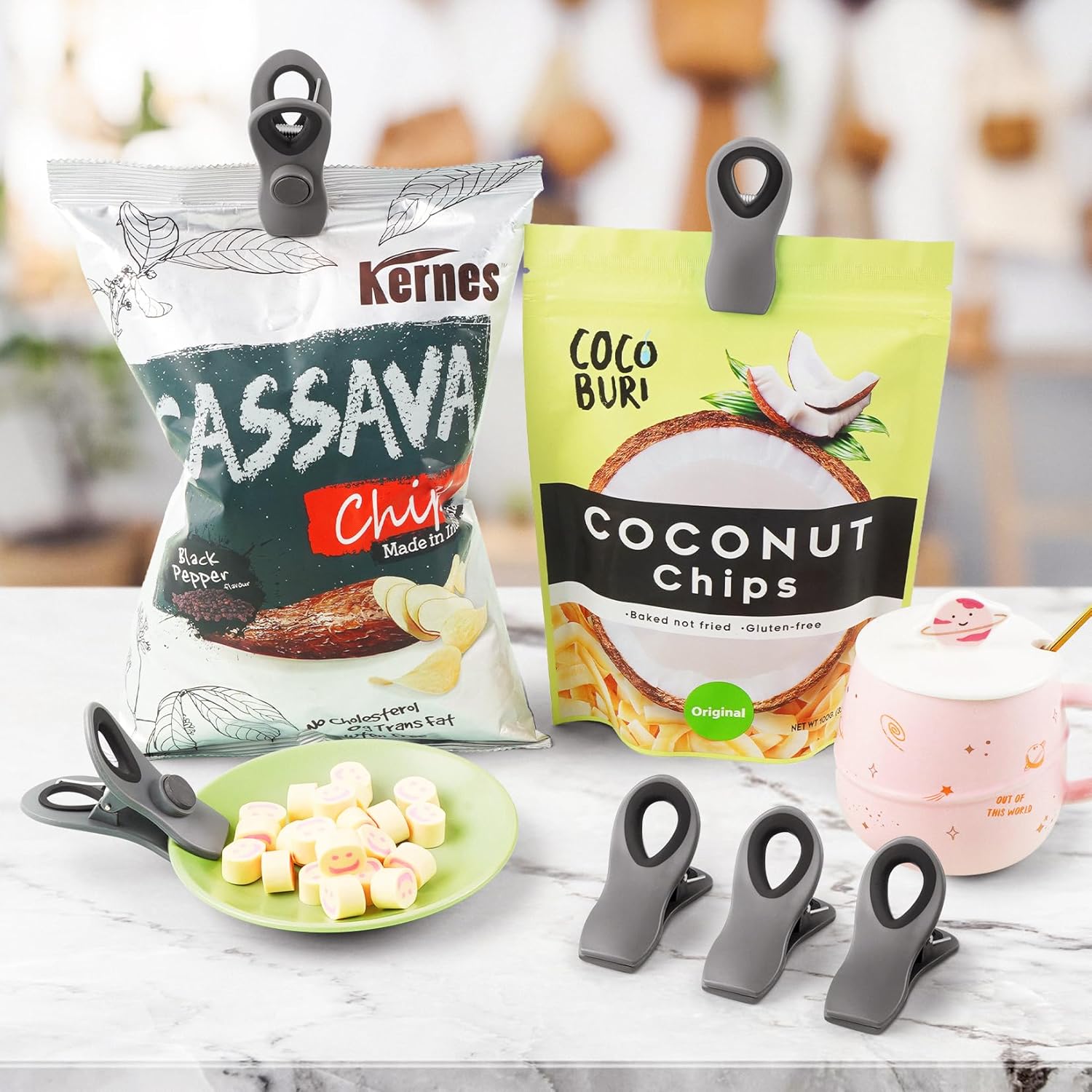 - Magnetic Chip Clips- Our clips are equipped with magnets on the back, making it easy to attach them to the fridge. Chip bag clips are not only useful for sealing chip bags but also convenient for holding notes, photos, artwork, receipts, and other small items.