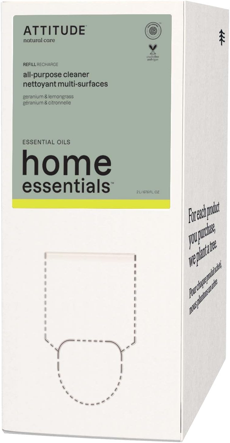 ATTITUDE All Purpose Cleaner, EWG Verified Multi-Surface Products, Vegan, Naturally Derived Multipurpose Cleaning Spray, Geranium and Lemongrass, 67.6 Fl Oz