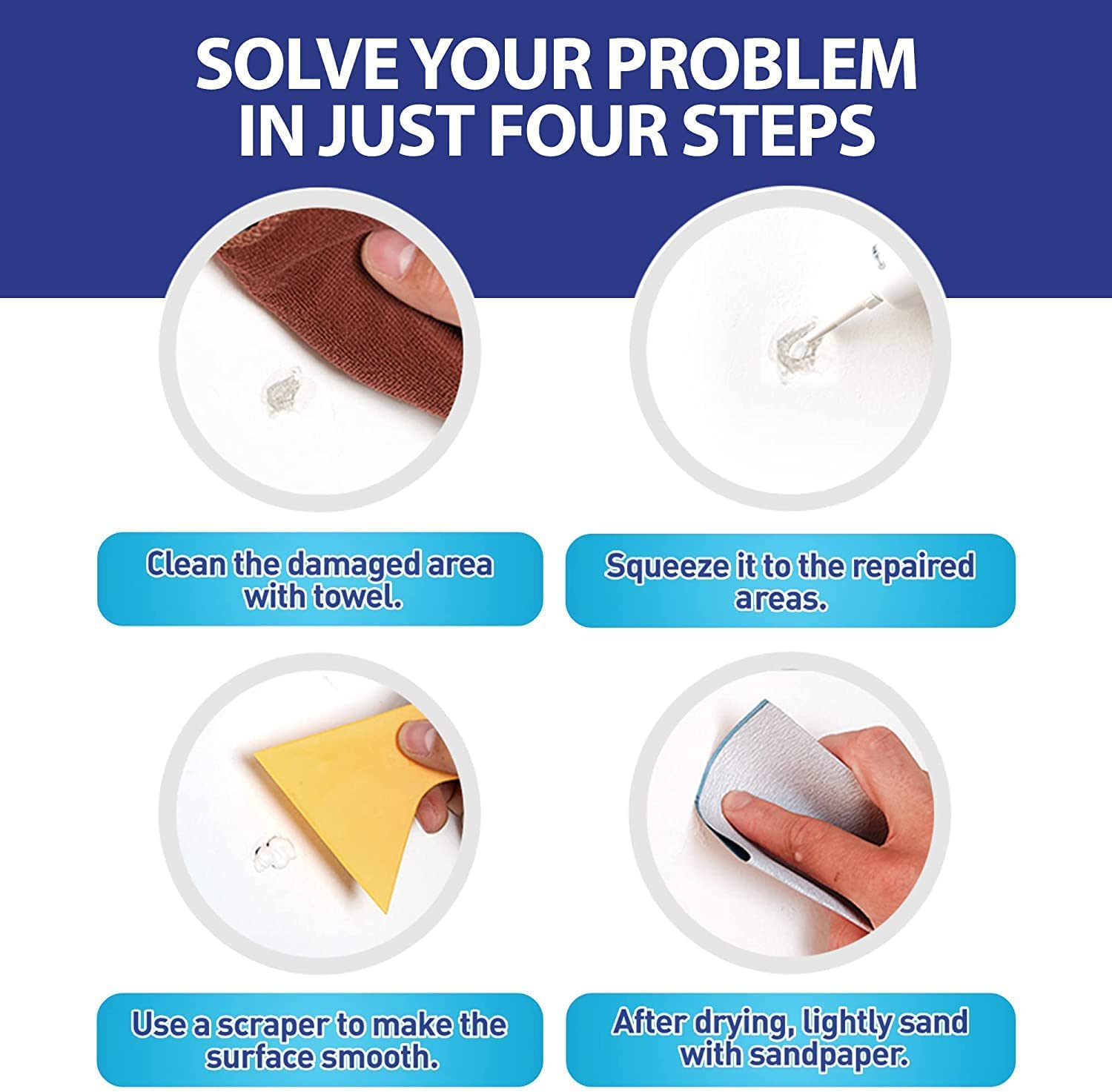 - Quick Dry & Perfect Repair:This wall mending agent easily and quickly repair the damaged wall.Just gently squeeze out and use a spatula to smooth. spackle wall repair kit can be reused, Meet your various repair needs.