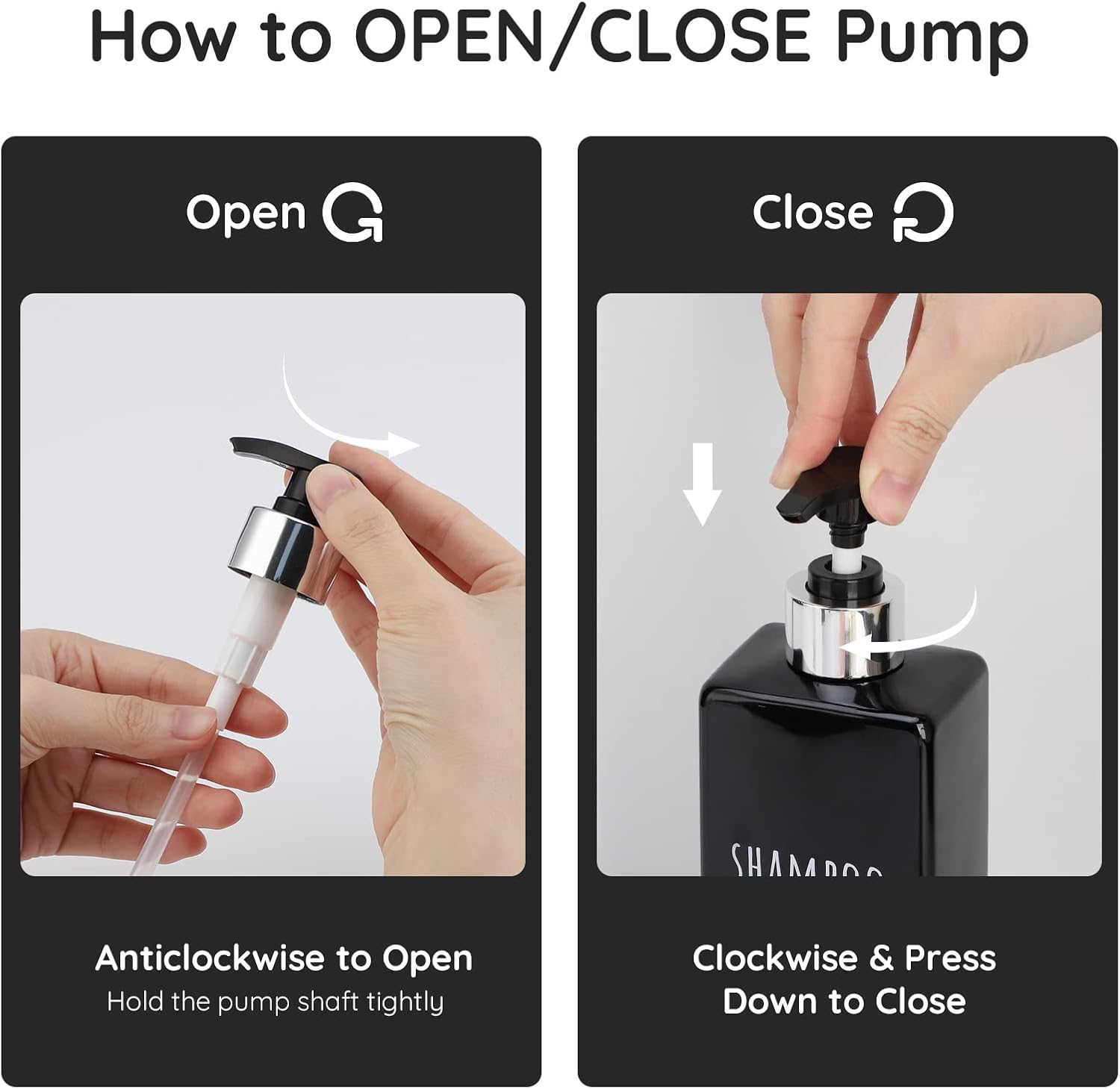 - 【Large Capacity】Each dispenser bottle holds 16.9oz/500ml reasonable large capacity to meet the whole family daily essential needs. 3 packs of pre-printed bottles, indicating SHAMPOO, BODY SOAP and CONDITIONER can help you identify them easily.