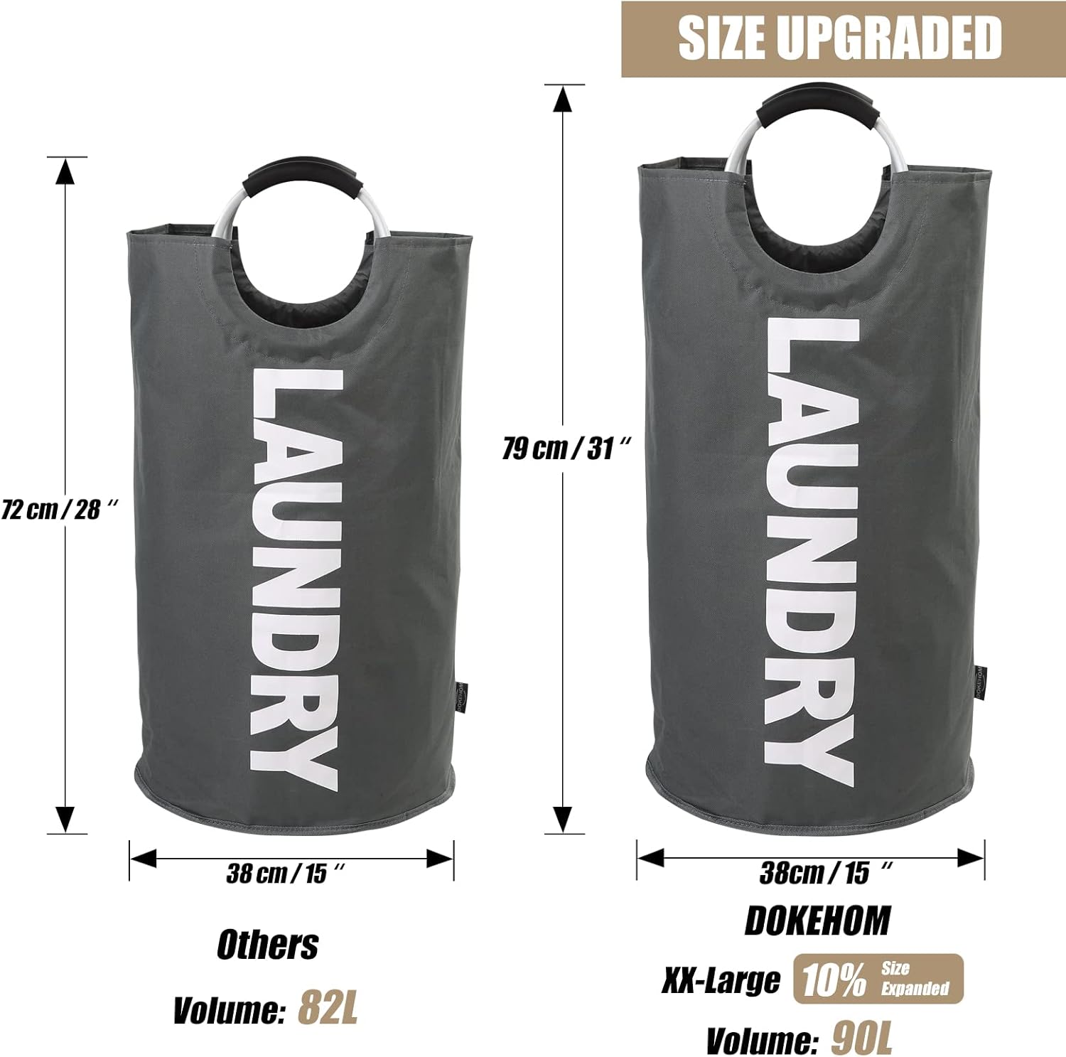 DOKEHOM 90L Large Laundry Basket, Collapsible Laundry Bag, Freestanding Tall Clothes Hamper, Foldable Washing Bin (Dark Grey)
