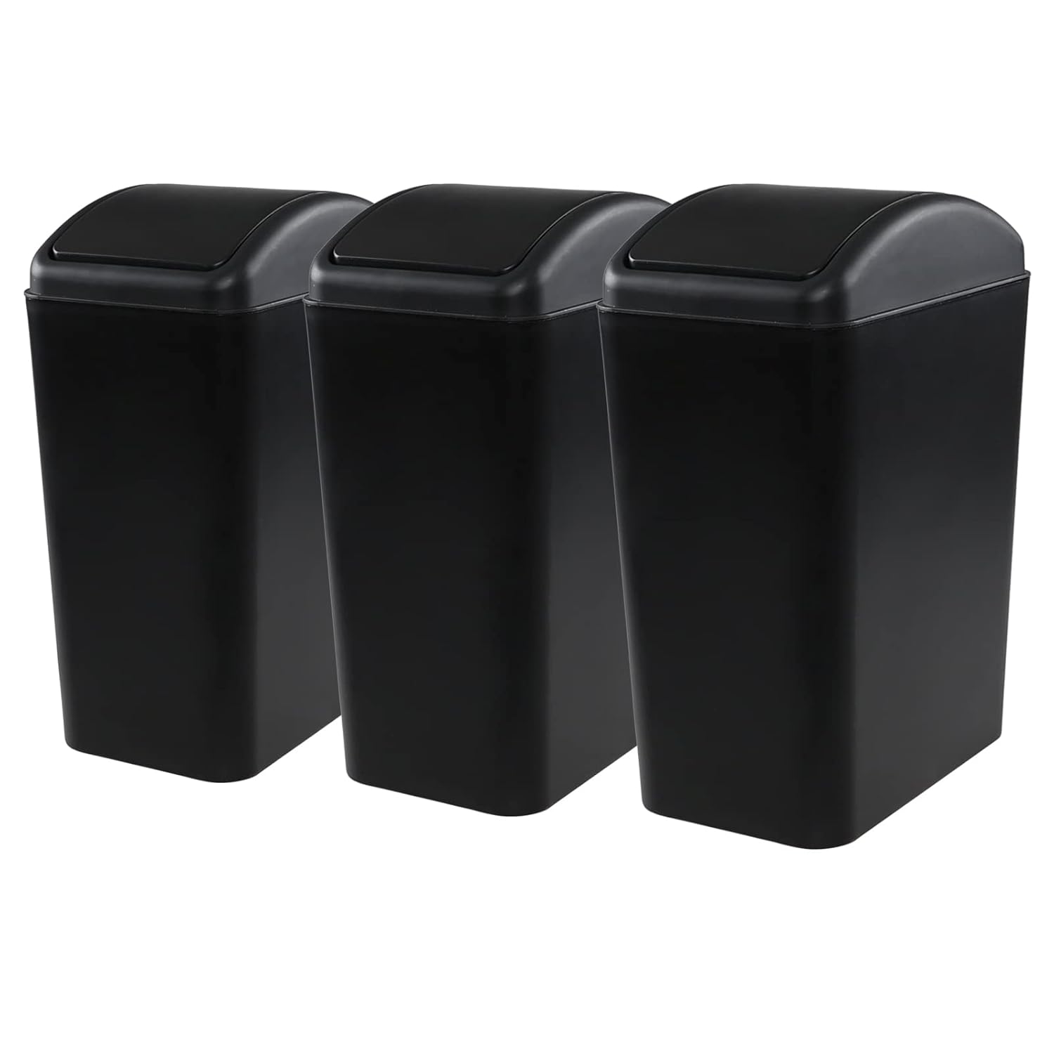 4.5 Gallon Trash Can with Swing Top Lid, Plastic Garbage Bin with Lid, Black, 3-Pack