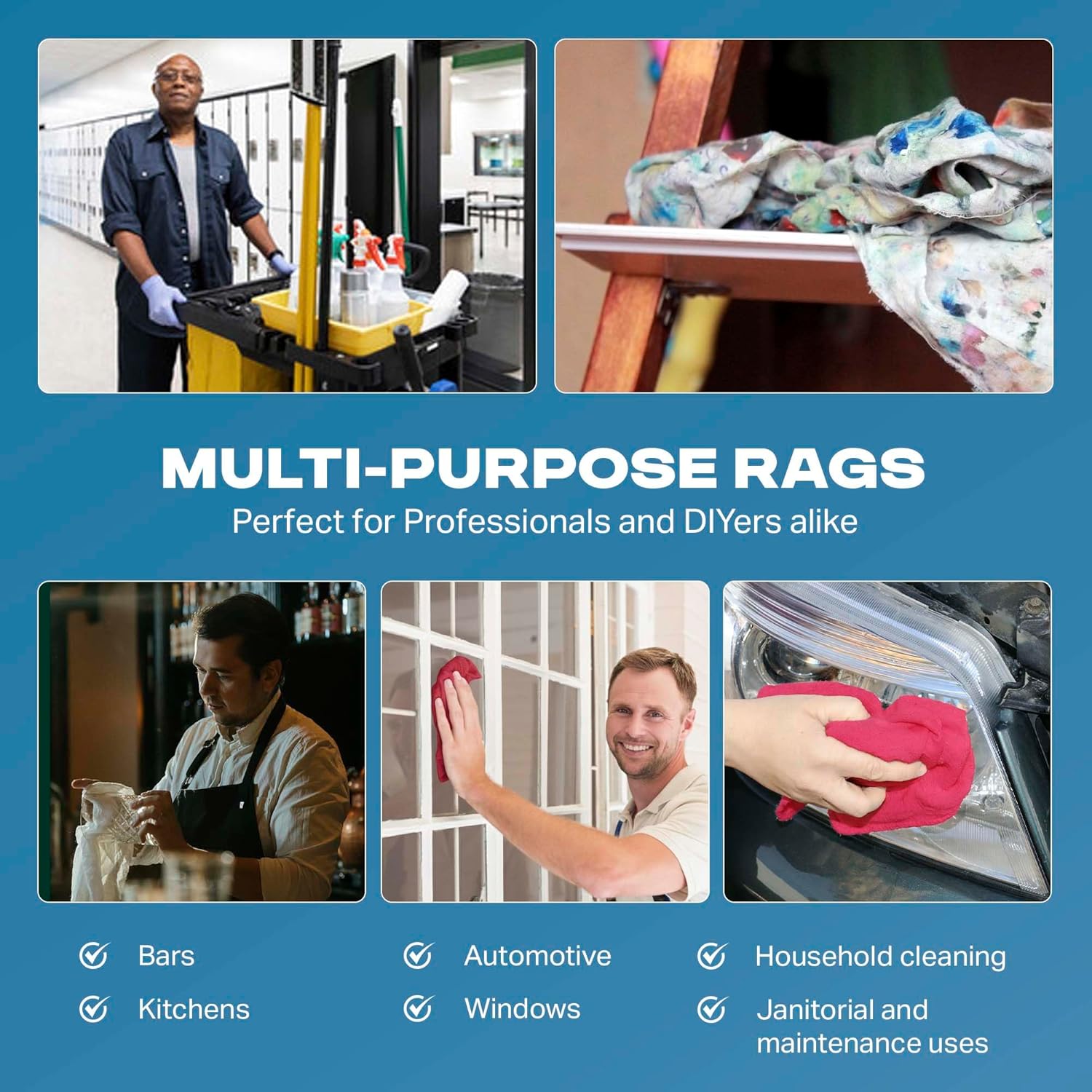 - Ideal for Pros & DIYers Alike: Trusted by mechanics, technicians, and cleaning professionals, these shop rags deliver consistent, lint-free performance. Use these shop towels for wiping tools, cleaning machinery, detailing vehicles, or general maintenance where high-quality cotton shop towels and rags are essential.