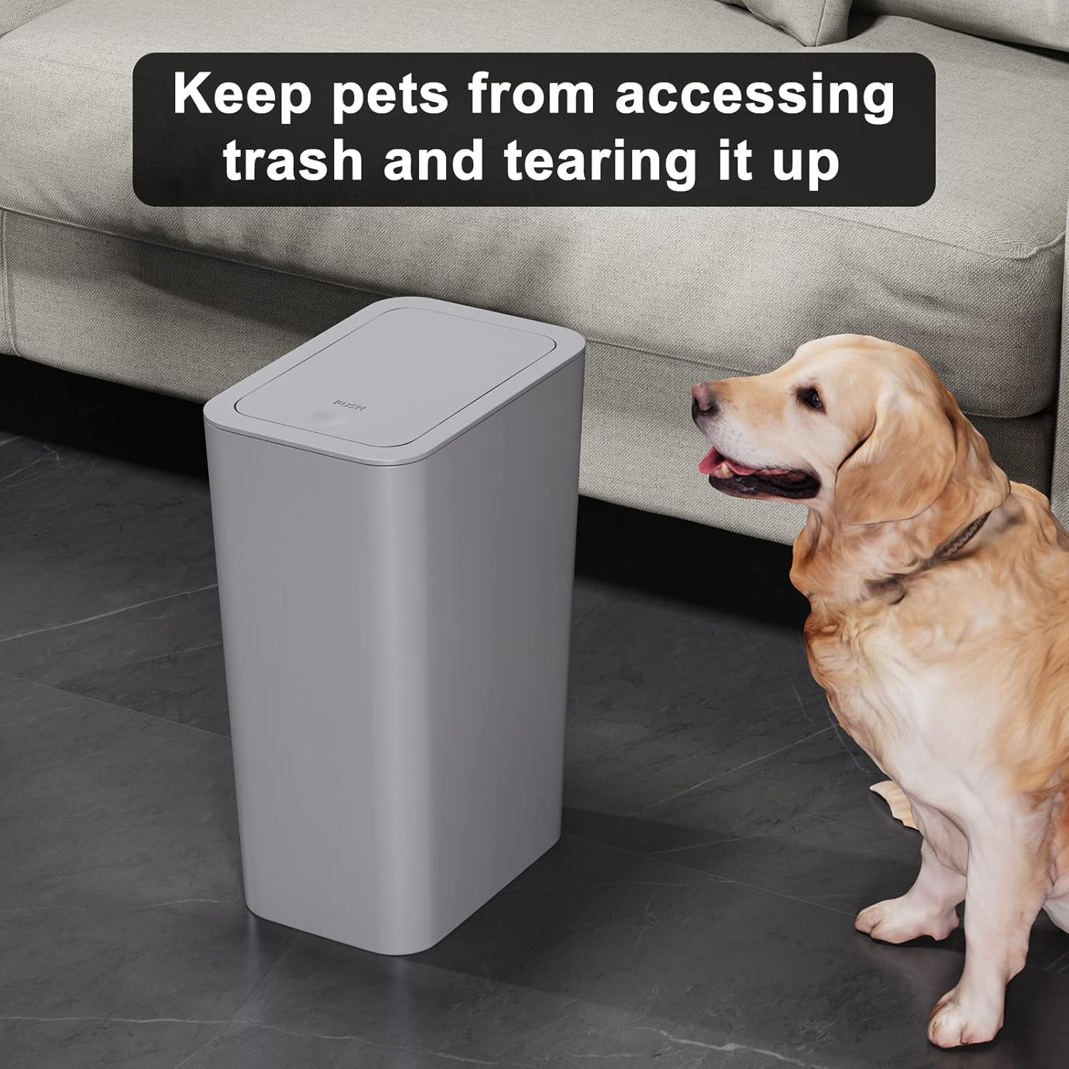 - 3 Pack Premium Pop-Up Trash Cans with Lids: Our small trash cans includes 2 pack 4 Gal kitchen trash can with lid and 1 pack 2.6Gal bathroom trash can. These grey bathroom trash cans with lids are great for any home or office, can be used as kitchen trash can, trash can bathroom, bedroom trash can,office trash can. Small trash can with lid features a unique pop-up press lid can seal and lock flavor, avoid garbage exposure, our trash can kitchen is sure to bring you neat space and fresh air