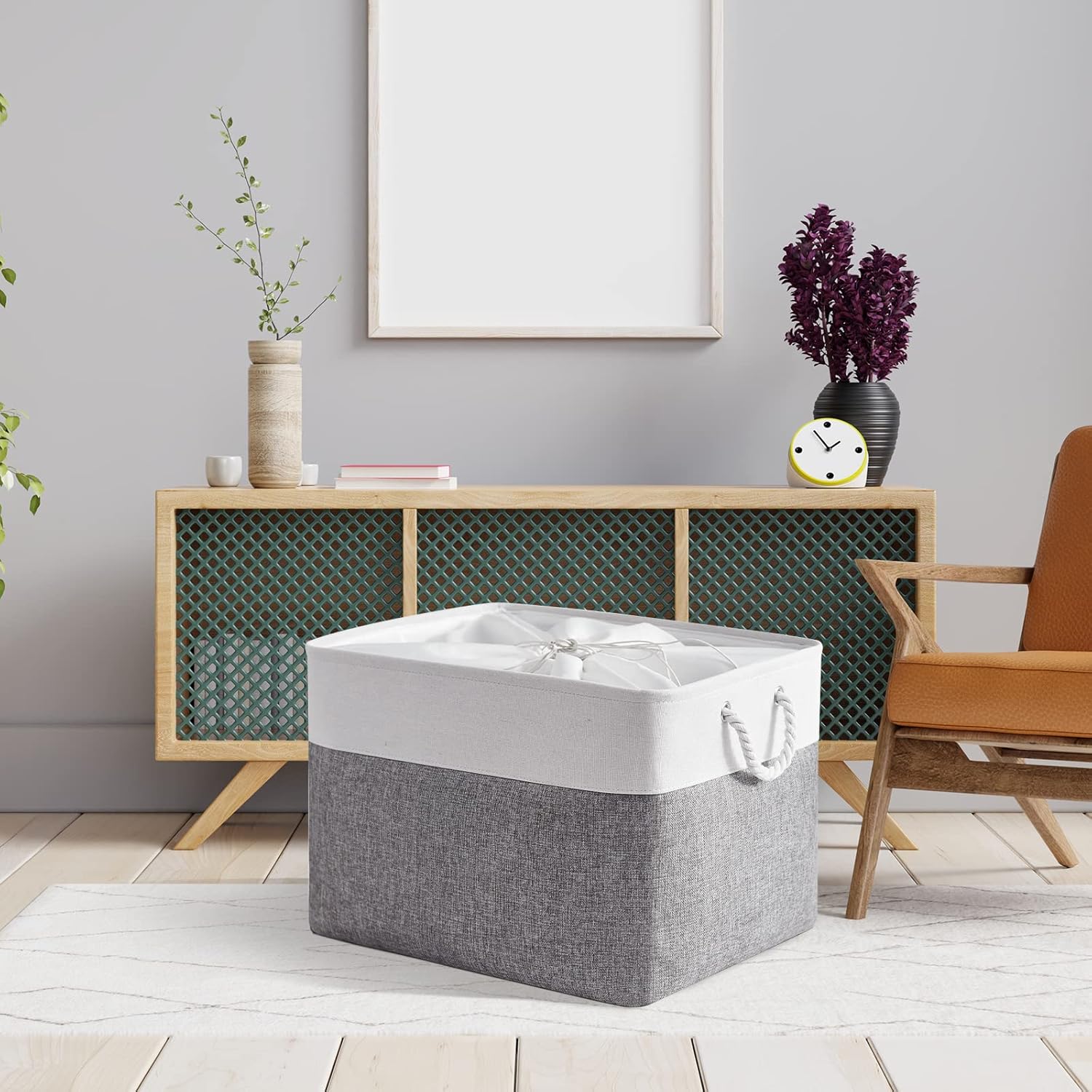 - 【ARTISTIC】: TheWarmHome Fabric Bins had great storage capacity and stylish. Minimalist design and neutral color exterior fabric can be integrated into any home decorations and styles. White cotton rope handles on the sides add a nature touch. The storage basket is like an art, not only provide a solution to many storage needs make home keep clean and tidy, doubles as a charming decoration. TheWarmHome, WARM YOUR HOME.