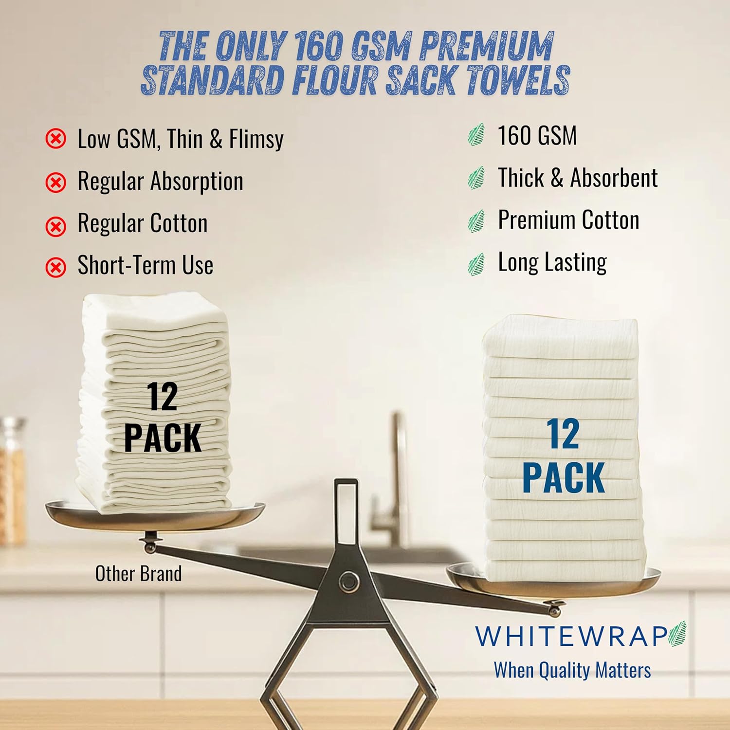- ✅ Ultra-Thick 160 GSM Flour Sack Towels – Kitchen-Grade Absorbency Tired of thin, ineffective towels? WHITEWRAP’s high-density 160 GSM flour sack towels, made from 100% ring-spun cotton with a 130 thread count, offer exceptional thickness and ideal for drying dishes, wiping, and tough kitchen tasks.