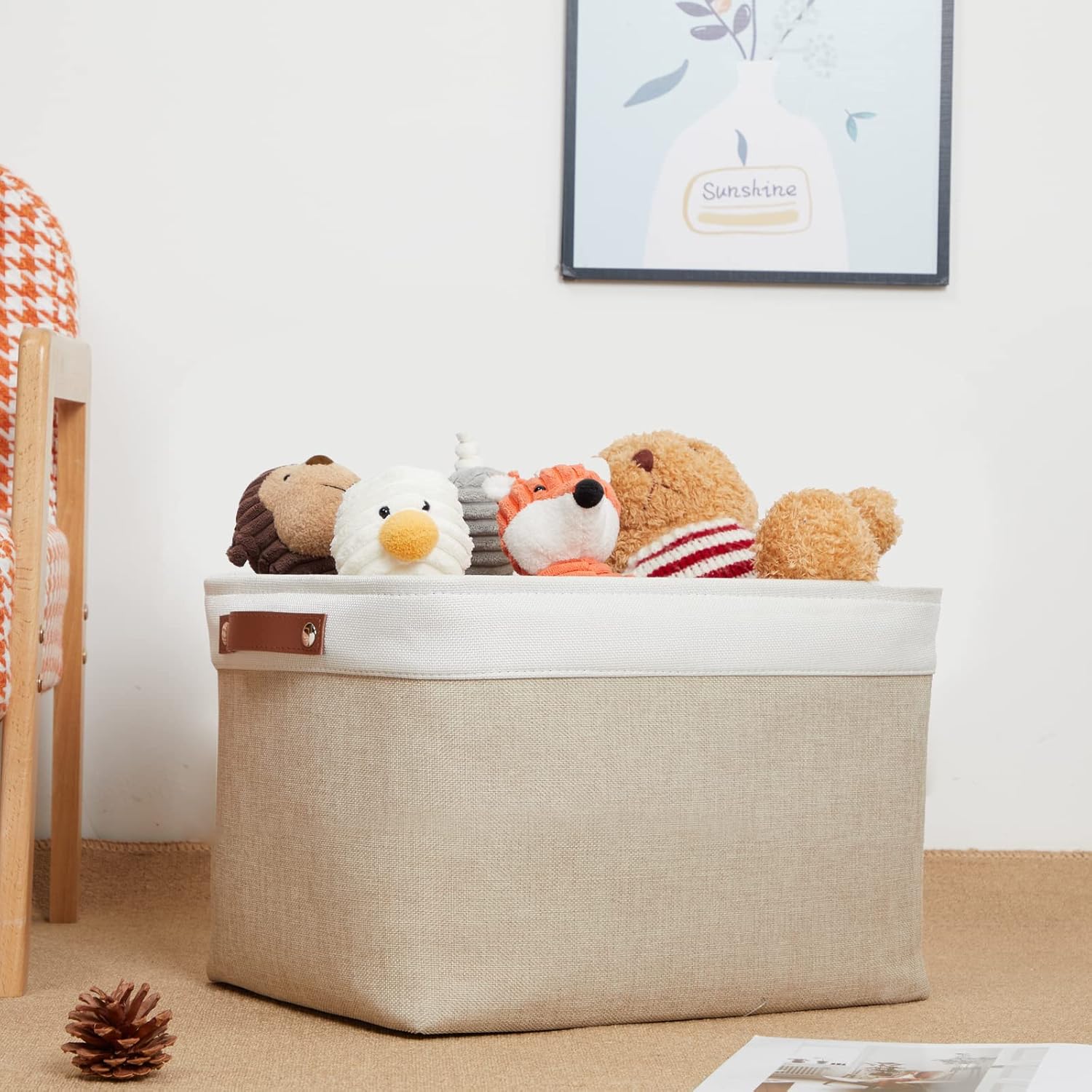 - 【EASY TO CARE】The fabric decorative storage box is sturdy and has no odor. Built to last these bins are reinforced with an O-ring on the top to give shape and structure so they are NOT machine washable. Lined with a thin linen fabric, the large storage bins are easy to clean, just wipe them with a damp sponge or cloth.