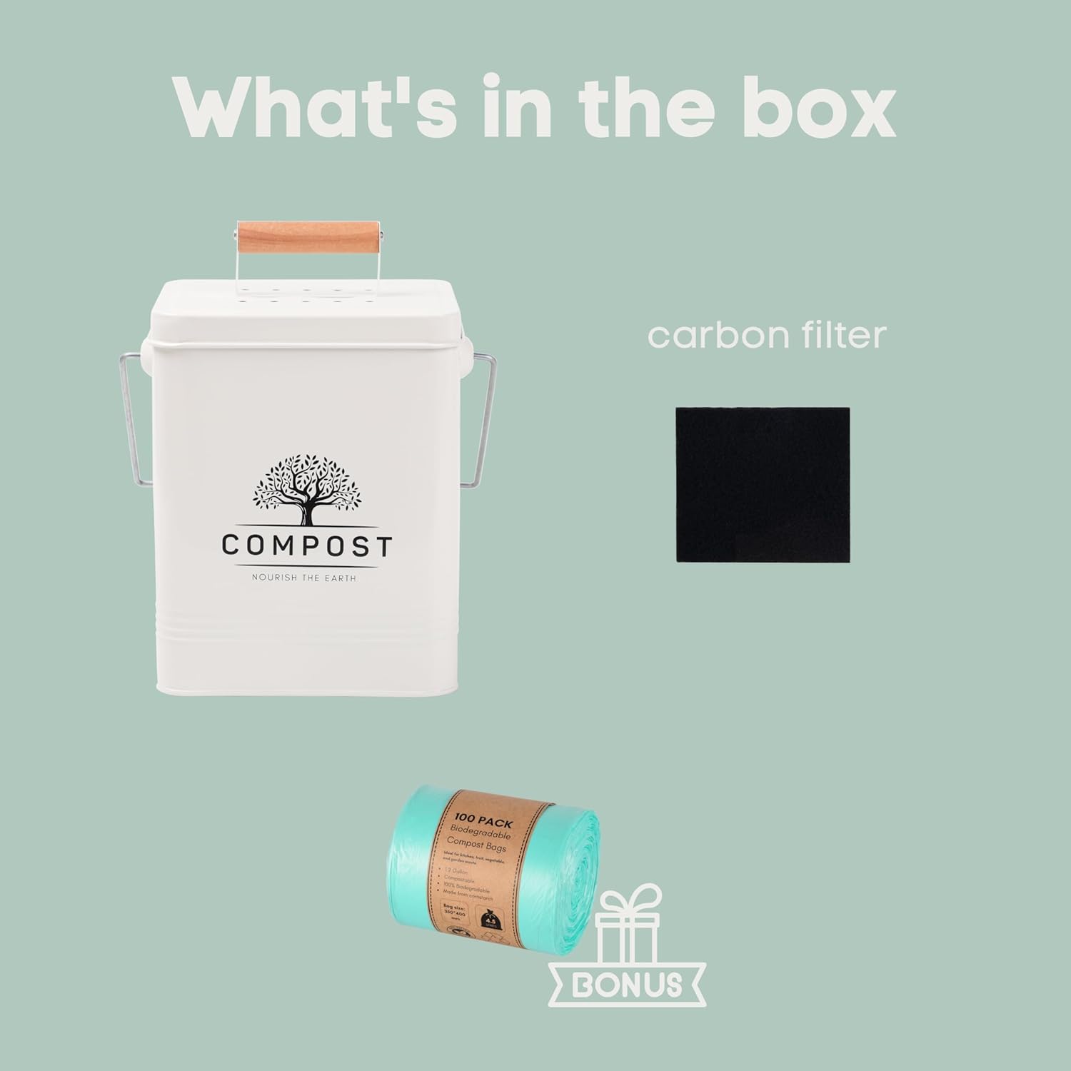 - Our kitchen compost bin considers aesthetics and practicality, and this trash can is a high-quality product that will accompany you in your actions of everyday life. This would also make a wonderful conscious gift. Easily clean with soapy water & soft cloth after use.