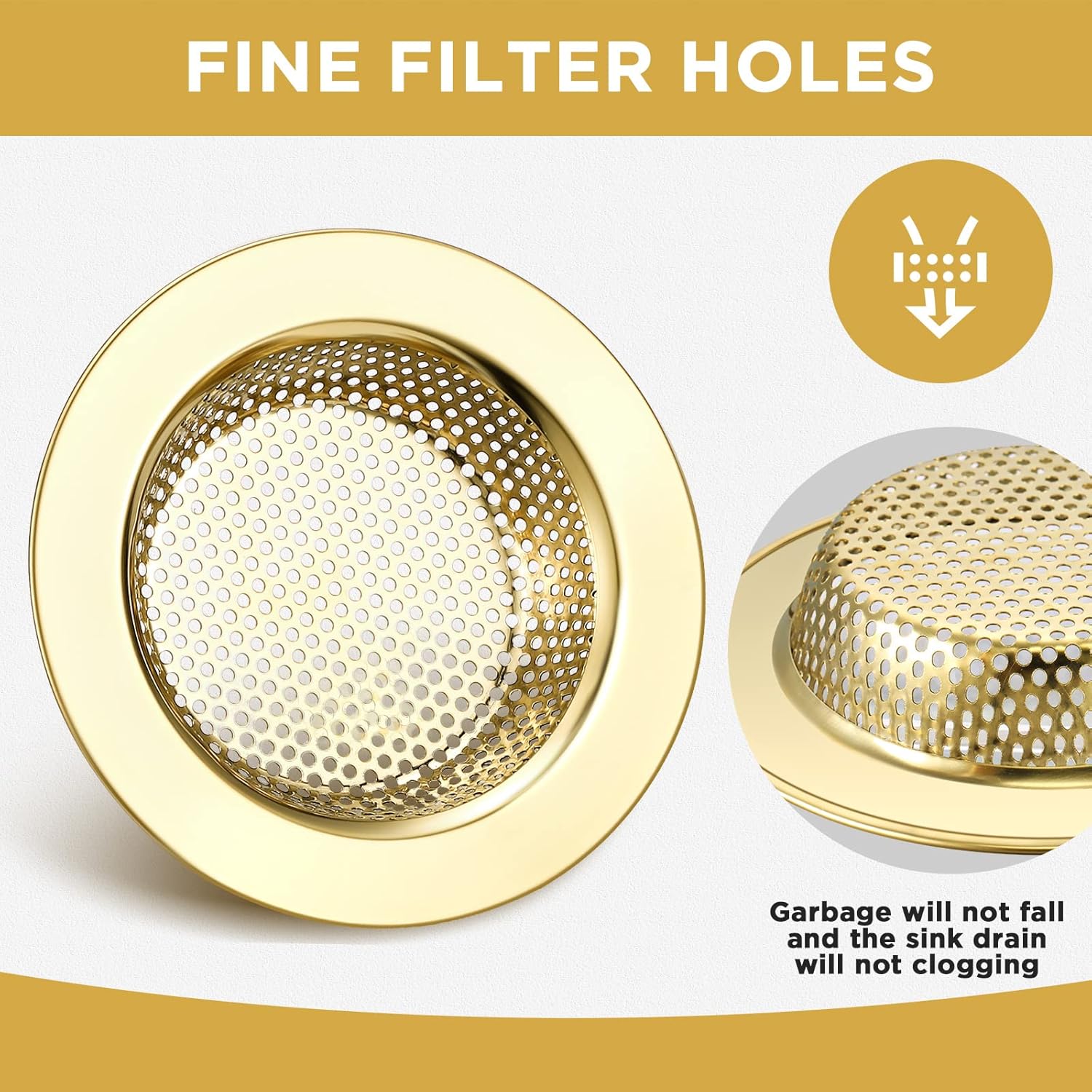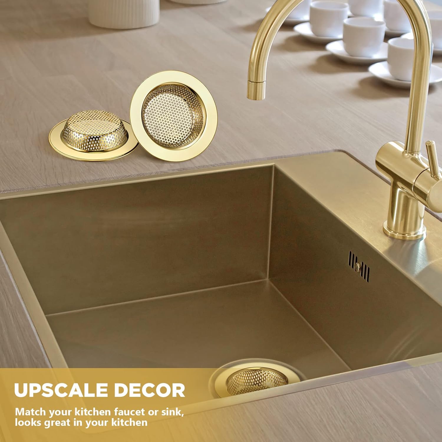 Retisee 2 Pcs Sink Strainer Stainless Steel Kitchen Sink Drain Strainer Basket Cover Mesh Hair Food Catcher, Large Wide Rim of 4.4 Diameter(Gold)