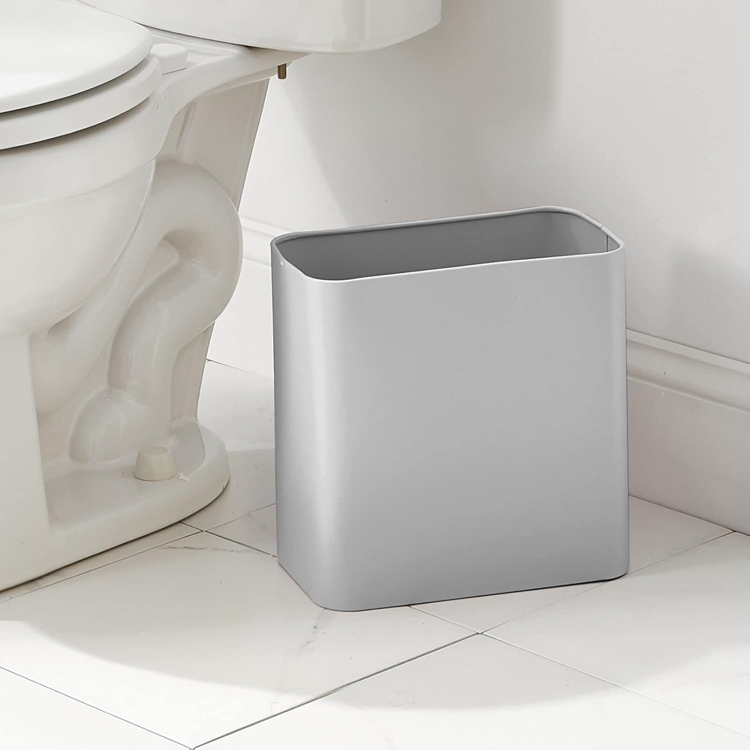 mDesign Small Metal 2.4 Gallon Trash Can Wastebasket Garbage Bin for Bathroom, Slim Rubbish Waste Trashcans Master/Guest Bath, Bedroom, Garage, Mirri Collection, Gray (23578MDBST)