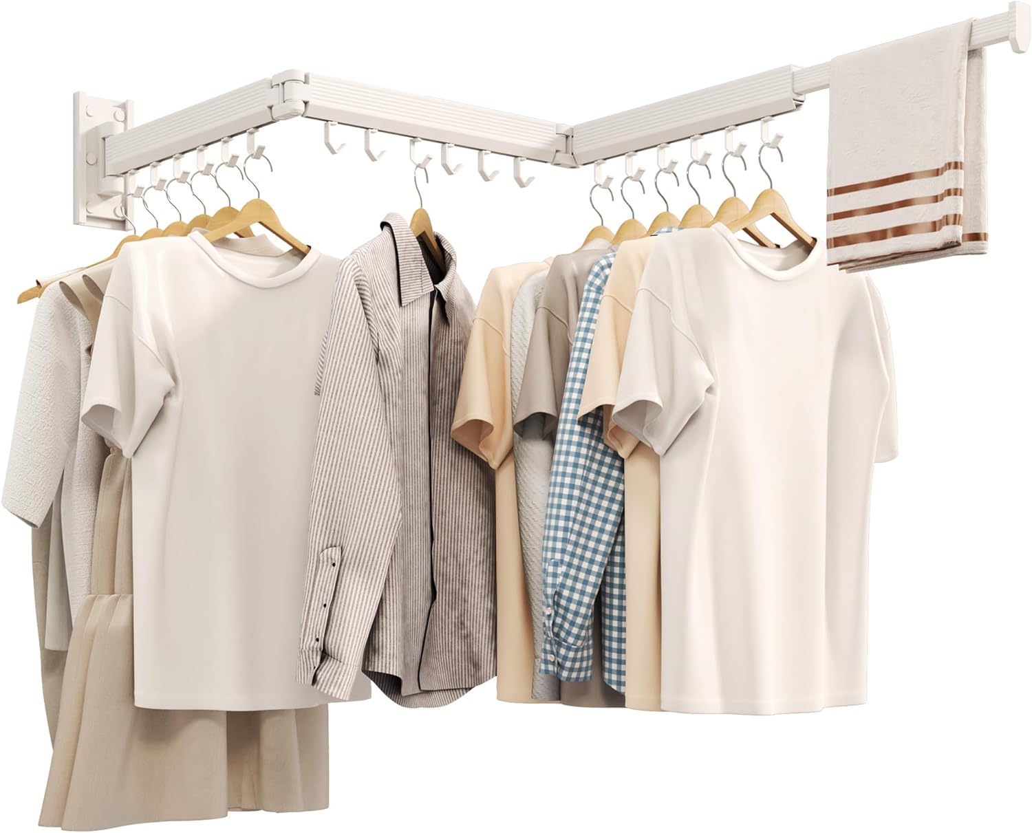 - (Clothes Drying Rack with 6 mounting holes)---Laundry Drying Rack,Compact Clothes Dryer, Folding Laundry Drying Rack, Wall-Mounted Garment Hanger, Retractable Clothes Rack, Collapsible Hanging Organizer