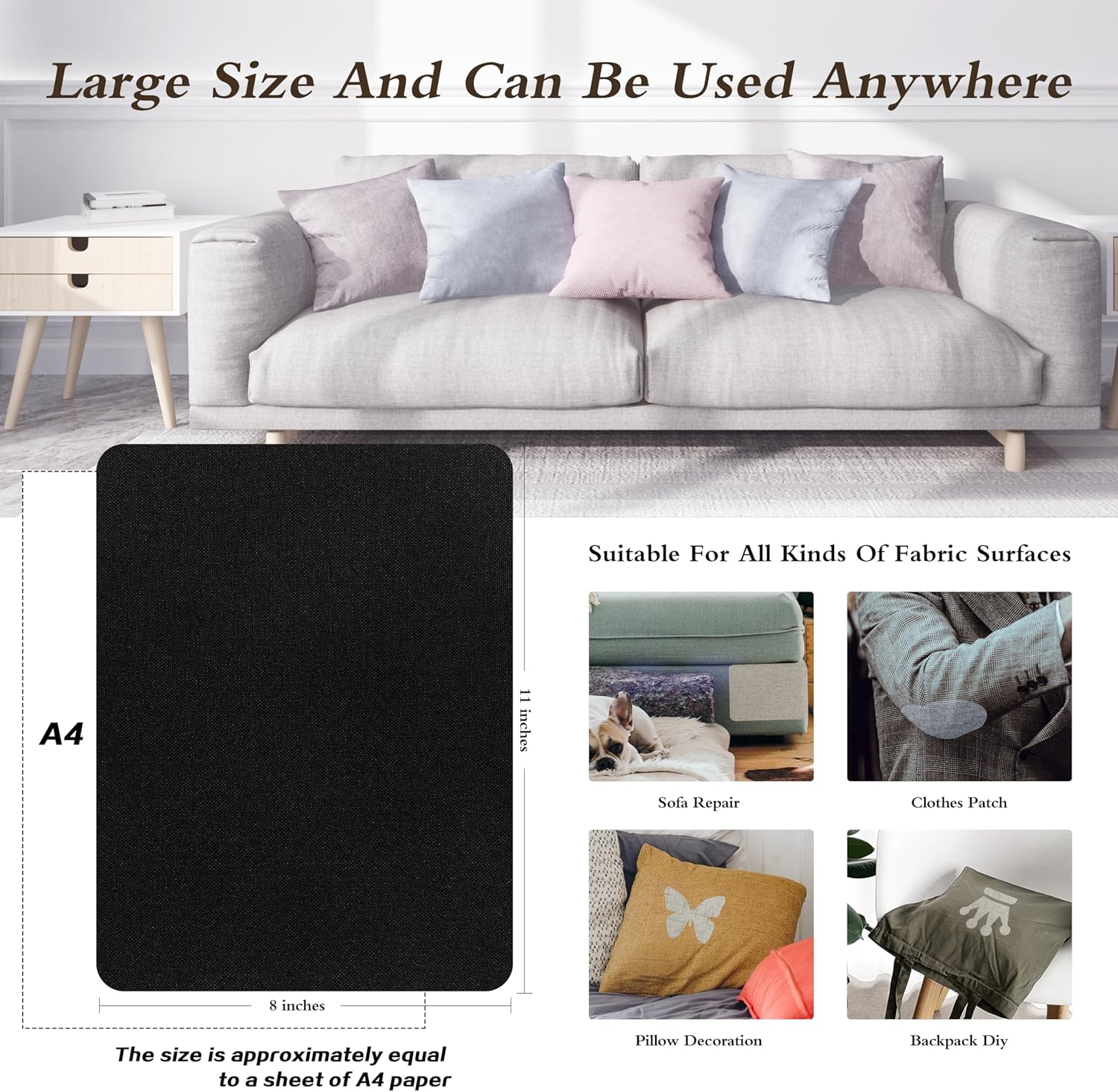Fine Linen Repair Patches, Self-Adhesive Fabric Patches, 8x11 inch 2 PCS, Multi Color, for Sofa and Clothes Repair (Black, 8" x 11" - 2PCS)