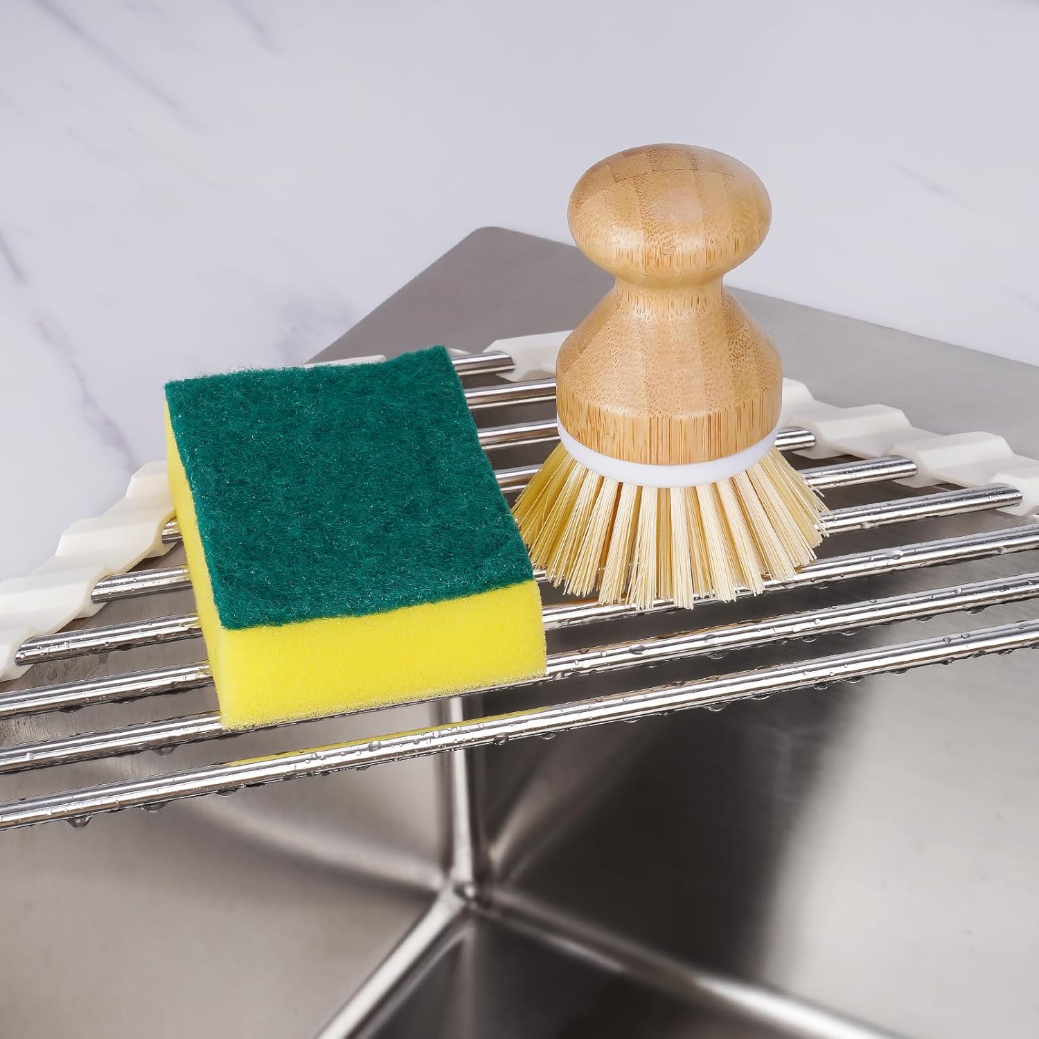 - âď¸ăSpace SavingăThis over-sink dish drying rack takes up little space and the foldable design allows you to quickly roll it up for easy storage and make your kitchen look less cluttered. It is the best cutlery drainer for your kitchen and can replace bulky dish racks and colanders. Suitable for most standard sinks and drawers. Please kindly check your sink size before purchasing.