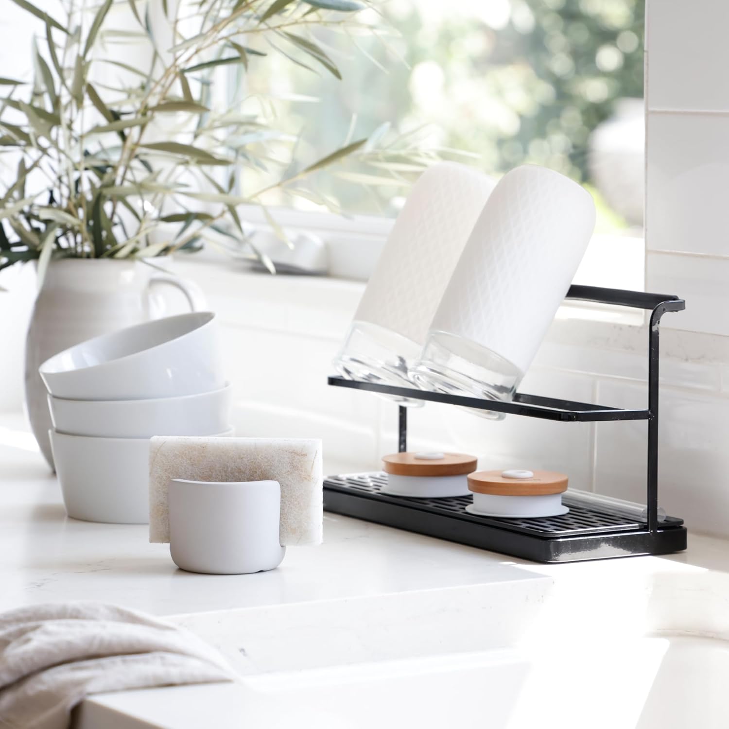 - CONVENIENT SINK ACCESSORY: Our Sponge Holder Provides Instant Drying and Easy Access to Your Sponges, Keeping Them Organized and Within Reach for Hassle-Free Kitchen Tasks.