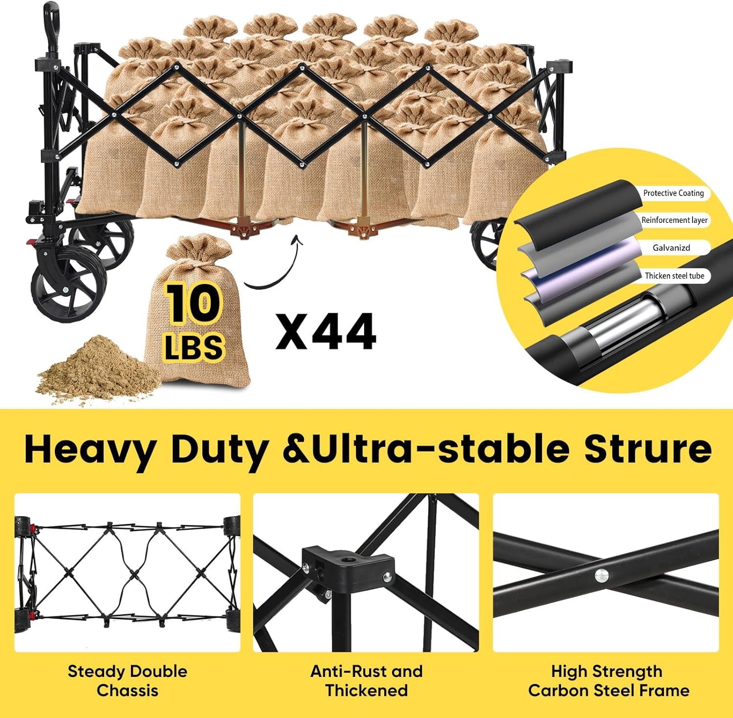 - ใ๐๐ฅ๐ญ๐ซ๐-๐๐ญ๐๐๐ฅ๐ ๐๐ญ๐ซ๐ฎ๐๐ญ๐ฎ๐ซ๐ใ:๐๐๐ญ๐๐ง๐ญ๐๐ frame structure, using pipes that are ๐๐% thicker than normal wagon, is more stable and secure than other push carts .loading capacity up to ๐๐๐๐ฅ๐๐ฌ.With ฮฆ ๐ณ" ๐๐ข๐ ๐๐ฅ๐ฅ-๐ญ๐๐ซ๐ซ๐๐ข๐ง wheels and brakes,Sekey wagon can move smoothly for any occasion.