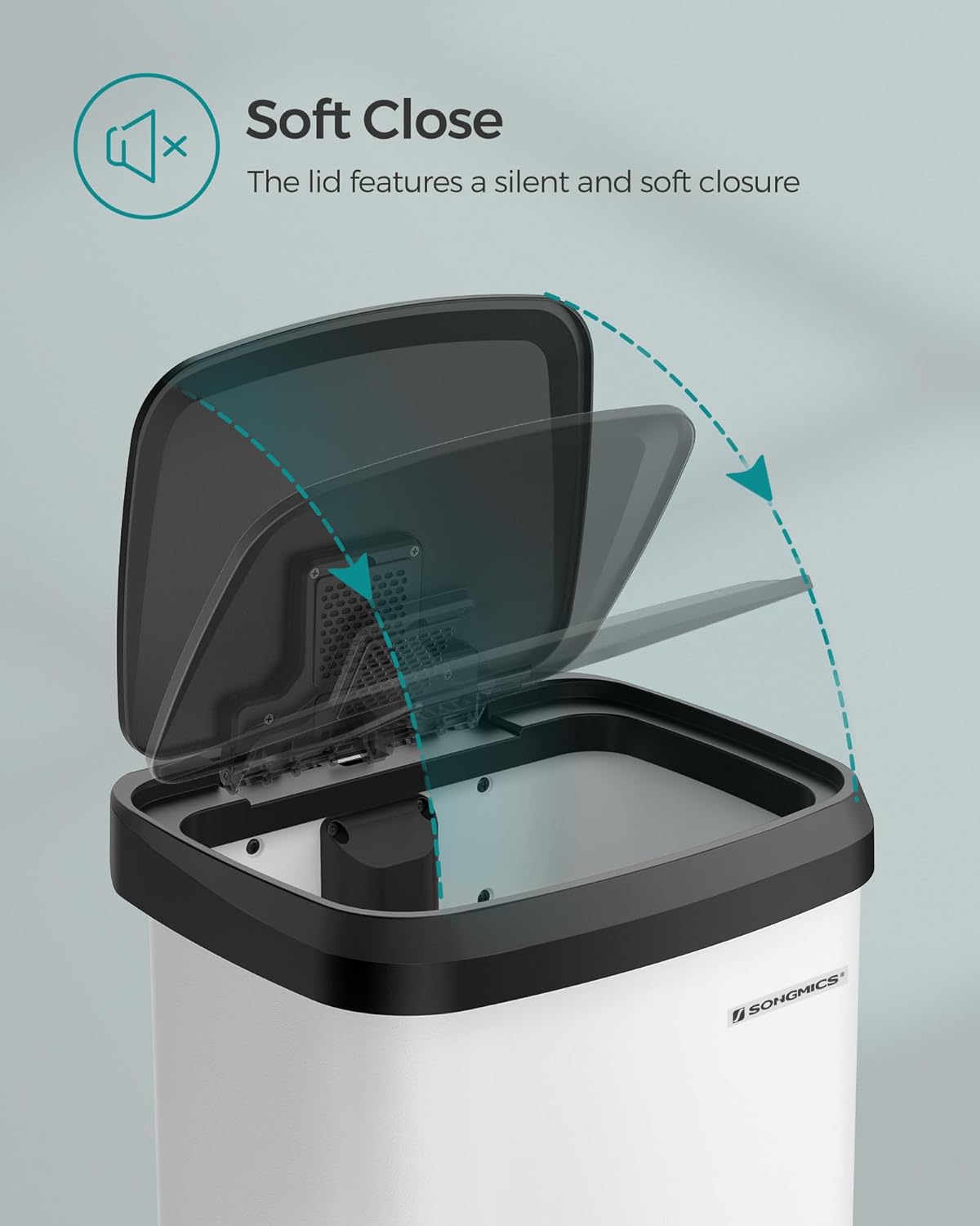 - [Soft-Close & Stay-Open] This garbage can has a lid that closes quietly and gently without slamming shut. Additionally, you can easily keep the lid open by manually opening it to a catch point when dealing with large clean-ups