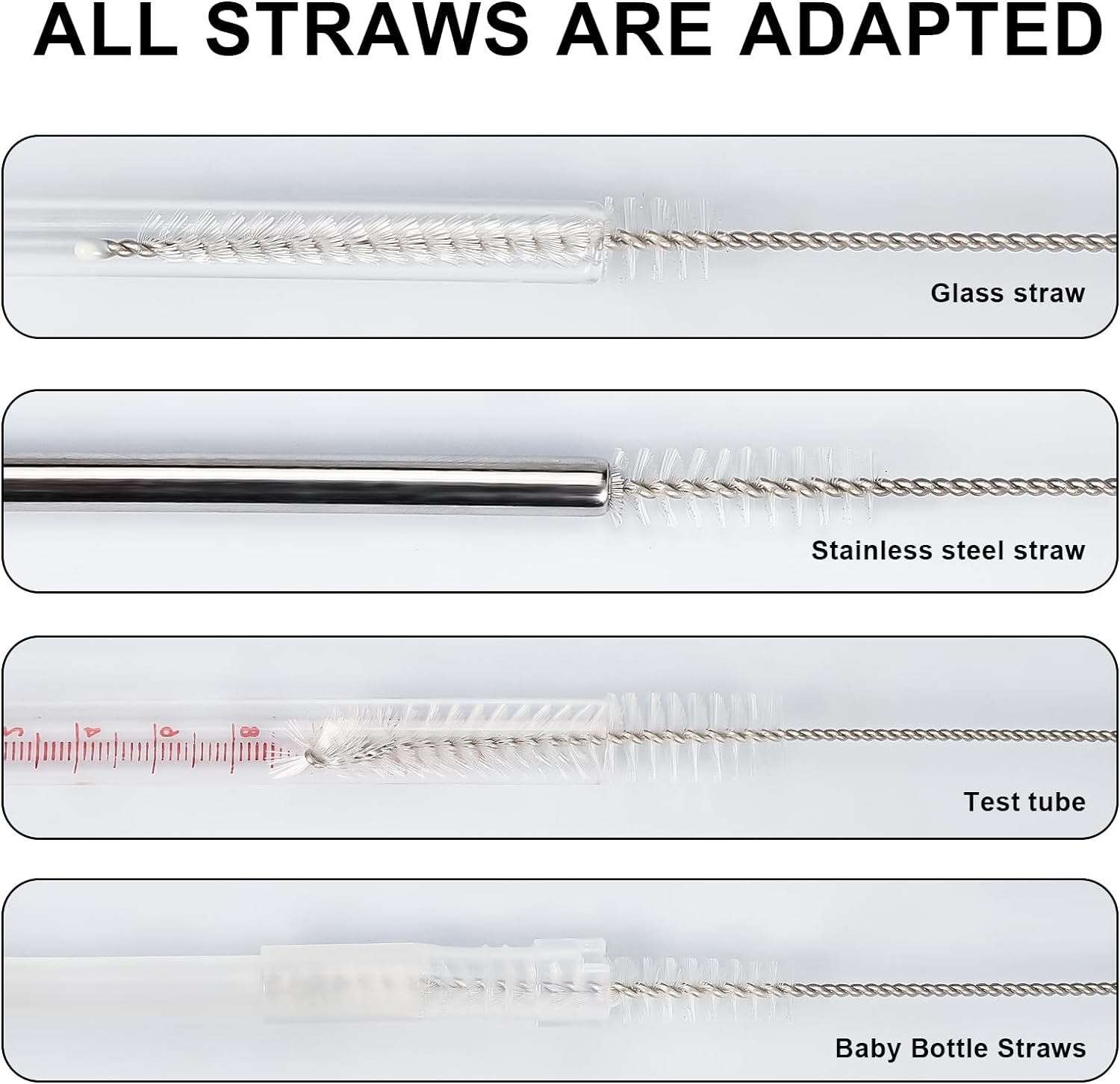 - Easy to Use: Bottle straw washing brushed has soft and durable bristles, you can insert it into the tube, rotate and remove to wash it. It generates foam easily, hard enough to scrub the dirty stuff. It is easy to clean the straw from top to bottom never scratch the inside of the straws.