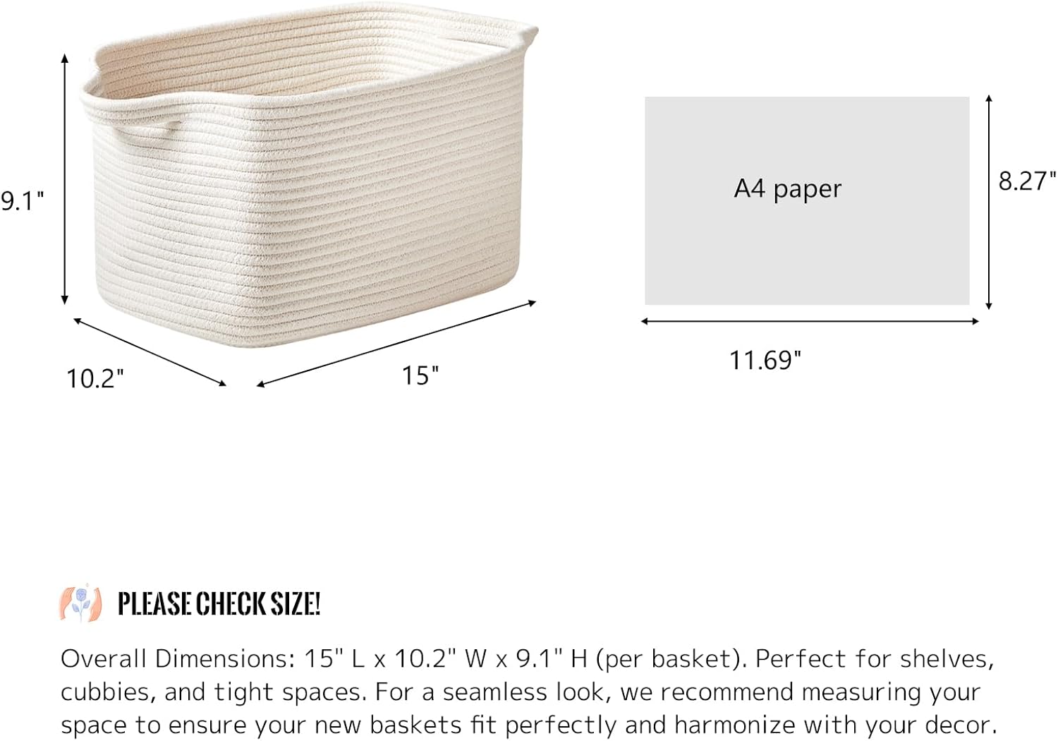 Cotton Rope Storage Basket 15"x10"x9" – Fabric Storage Bins for Organizing Clothes,Toys,Blankets – Durable Woven Storage Basket for Closet, Shelf & Living Room
