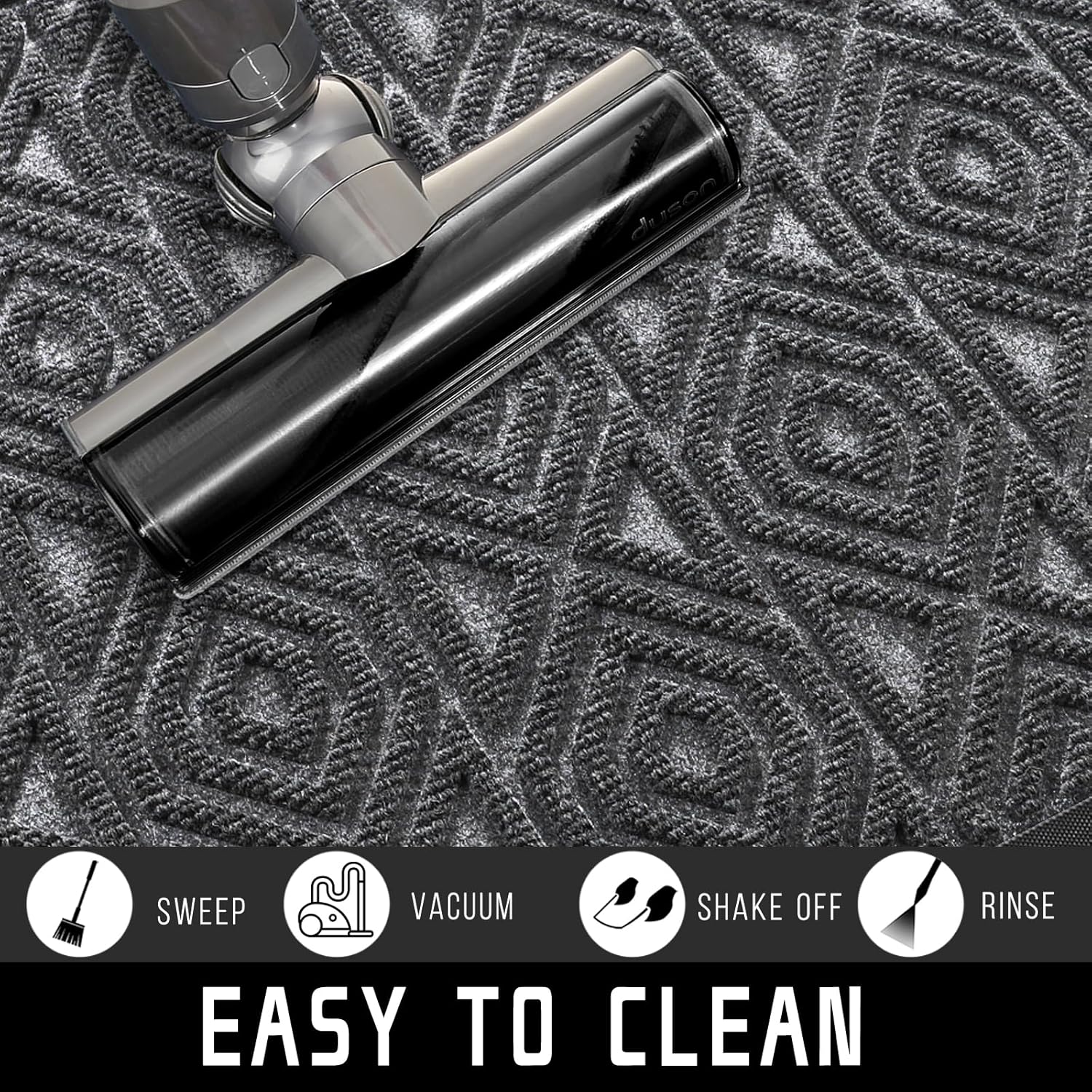 - [EASY TO CLEAN] Yimobra outdoor mat, Just use a vacuum cleaner, or sweep with a broom, or tap the backing and shake the doormat. For more in-depth cleaning, use a garden hose to rinse the floor mat, then hang it in a ventilated place to air dry it or use a dryer