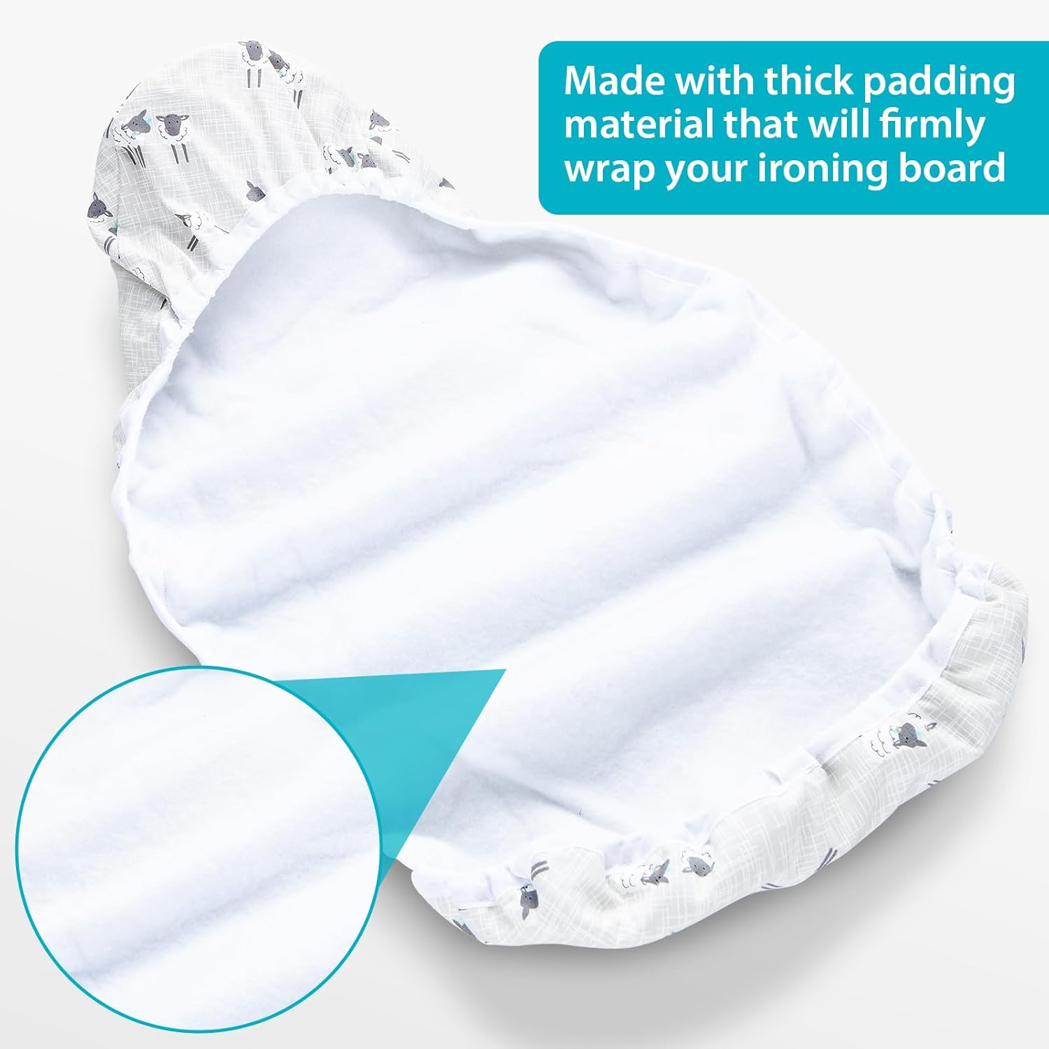 Over The Door Ironing Board Cover 13 x 37 inch, Small Iron Board Cover w 3 Layers Heat Reflective Thick Padding with Hook and Loop Fasteners (Gray Sheep)