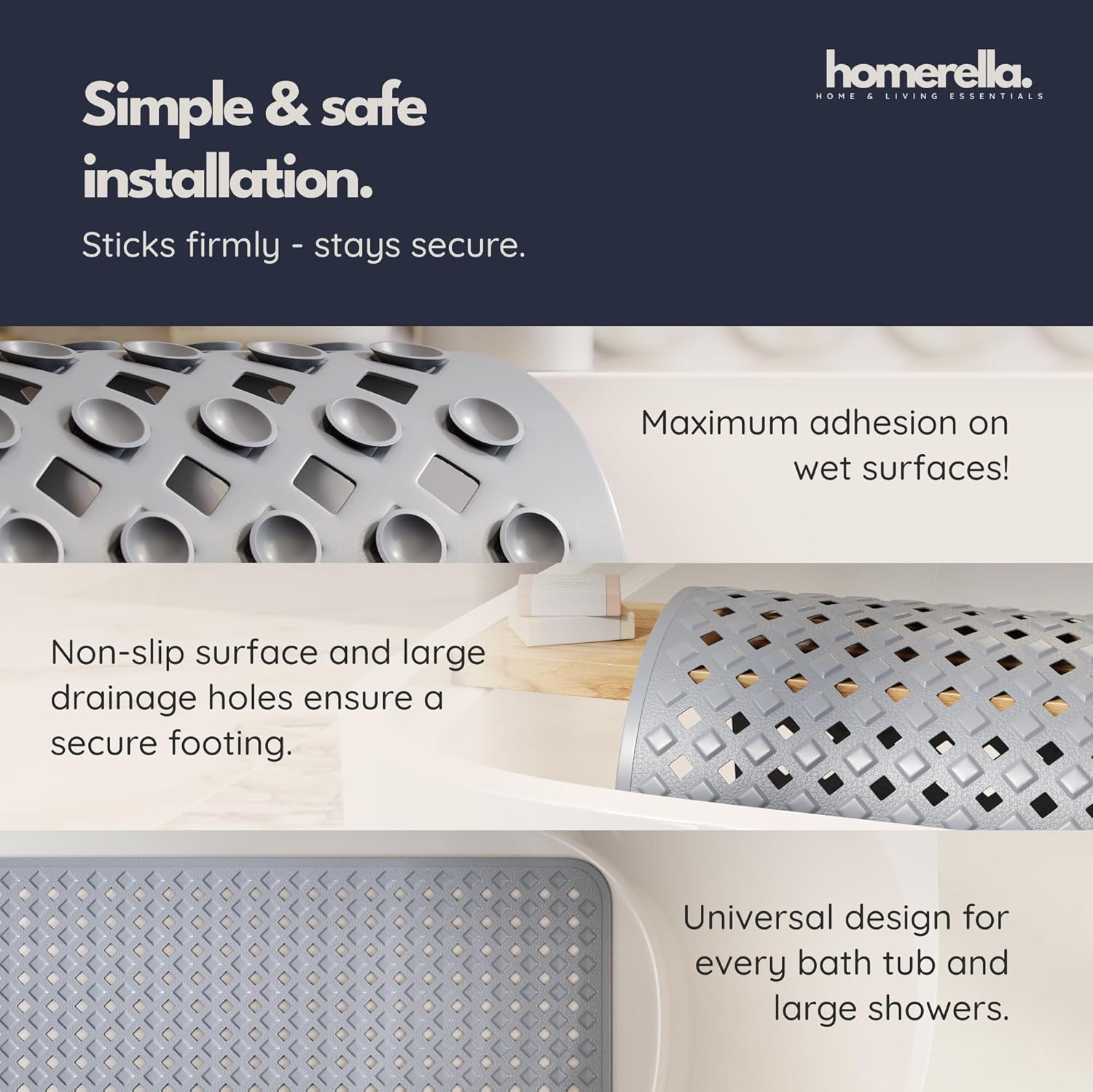 homerella® Bathtub Mat Non Slip 35x16, Incl. Hooks for Drying, Extra Long, 100% BPA Free, Shower Mat Non Slip Anti Mold, Machine Washable, Shower Mats for Inside Shower Mildew Resistant
