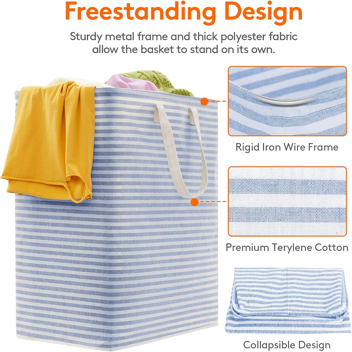 - Freestanding Design: Simply stretch the dirty clothes hamper out and it will stand upright on its own for a very long time. No installation is required at all.