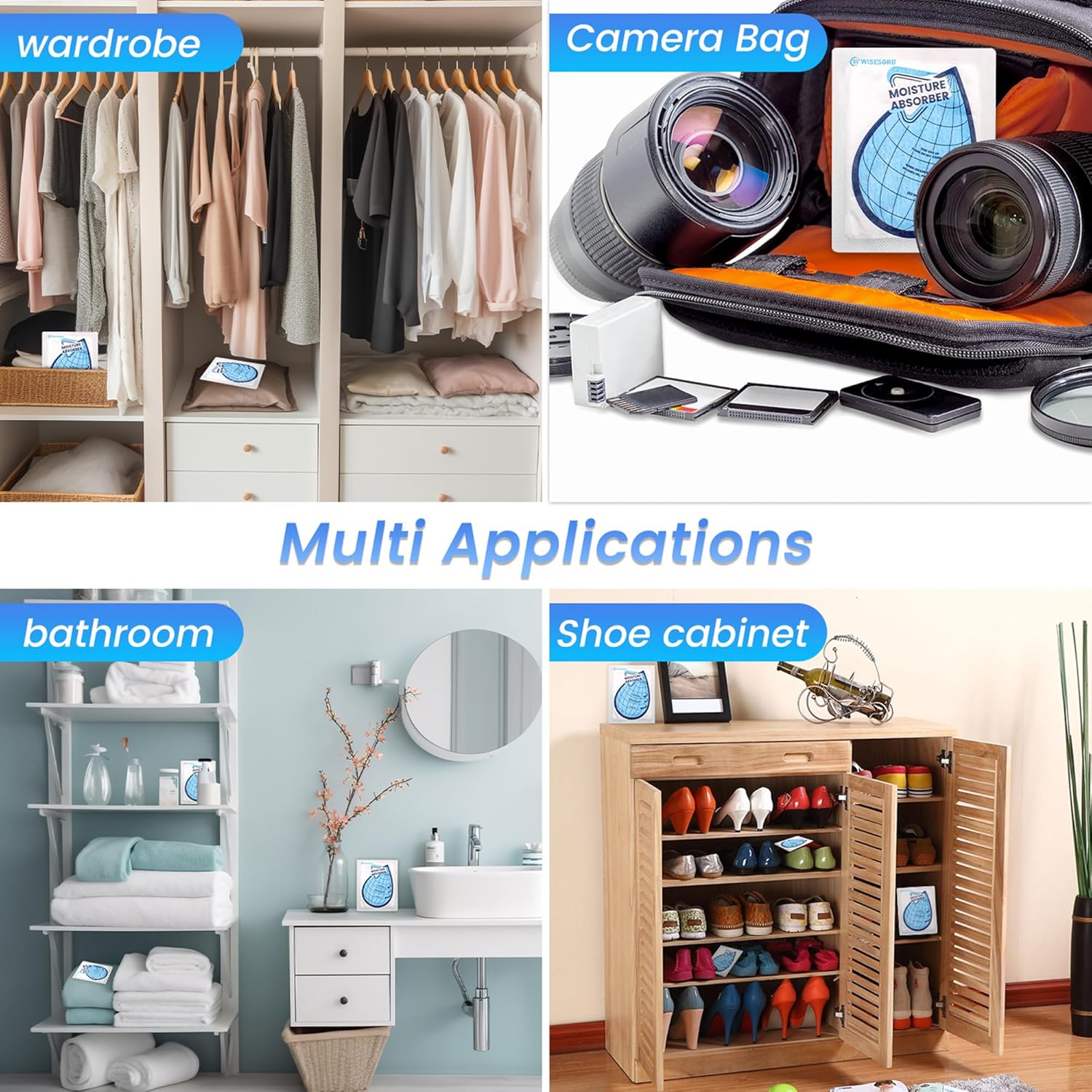 - 【Effective and Versatile Moisture Absorbers for Various Spaces】: In the battle against moisture-related issues like musty odors, and dampness, Wisesorb moisture absorber bags prove to be a game-changer. With their compact size, efficient moisture absorption, and user-friendly design, these bags have garnered positive feedback from users across different scenarios and environments.