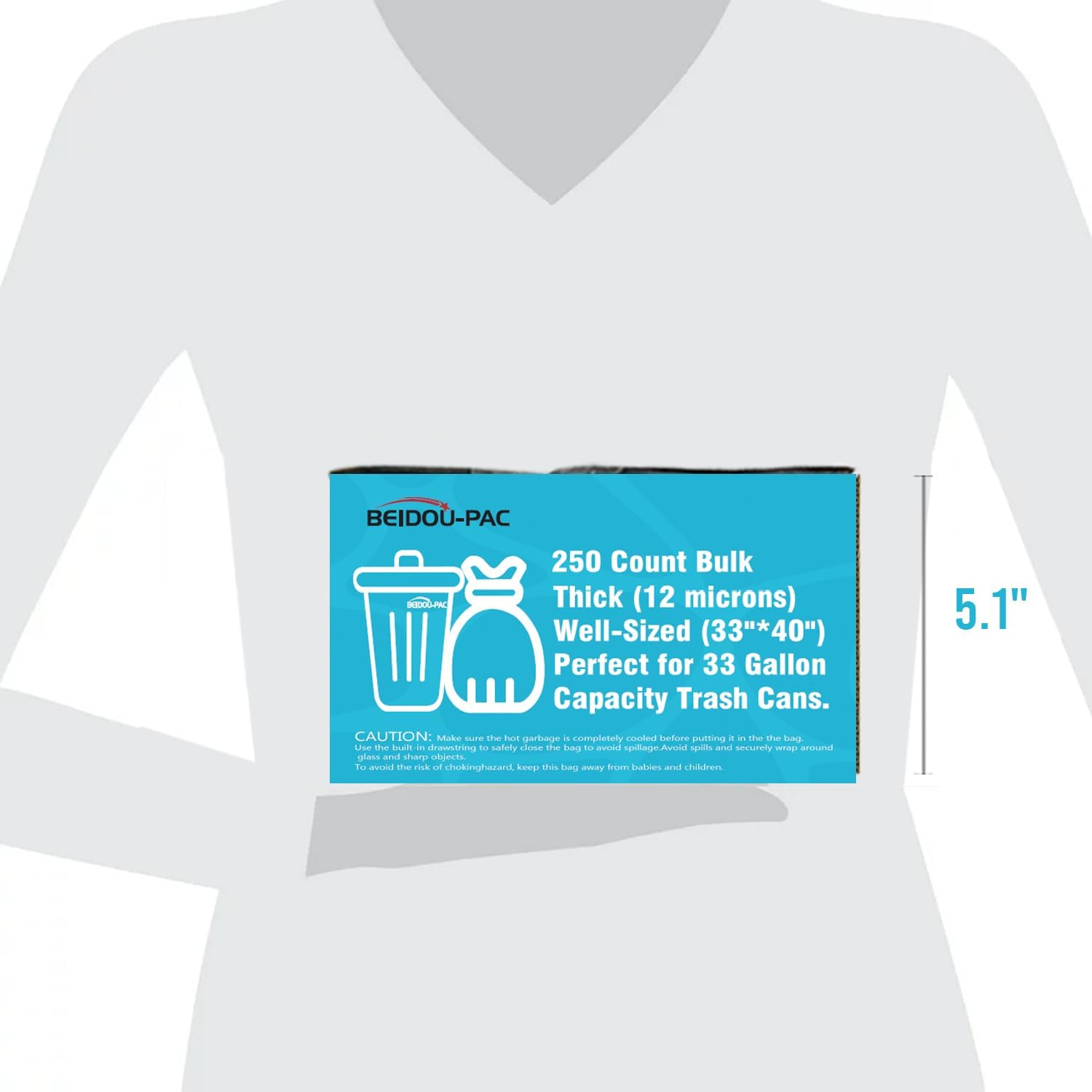 - 1, Product information: BEIDOU-PAC 33 gallon large clear plastic recycling Can Liners, Size: 33"*40"x 12 mic, Total 250 clear bags bulk (25 PCS/ROLL, 10 CORELESS ROLLS/CTN), Perfect for 33 Gal Capacity Office, commercial, industrial, or residential waste.