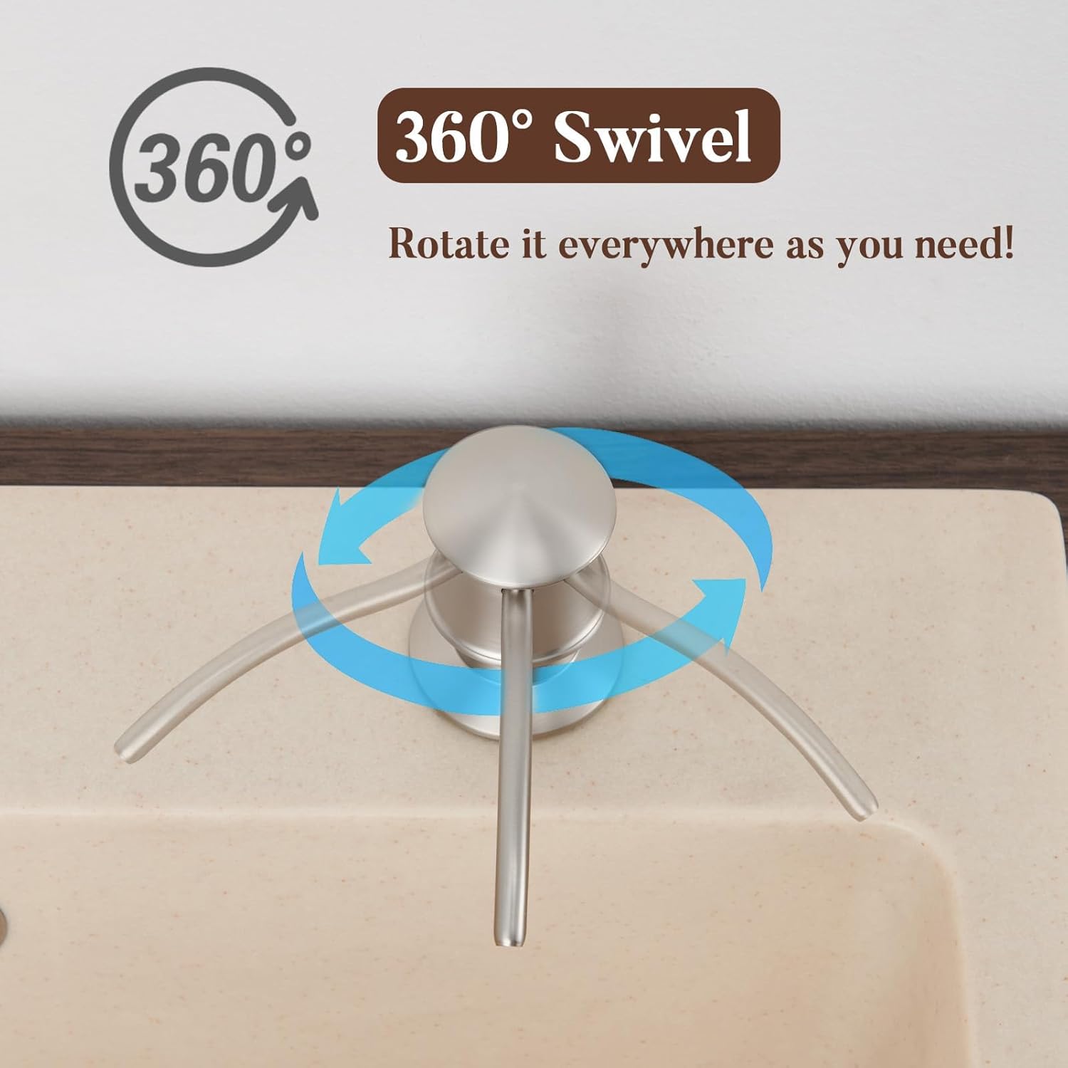 - 【EASY & HANDS ON DESIGN】 1. 360° swivels spout meet your different angles use. 2. Refill the bottle with liquid directly from countertop, more easy and hands-on. 3. Long Spout with arch line, promise a accurate use and no more spill to everywhere
