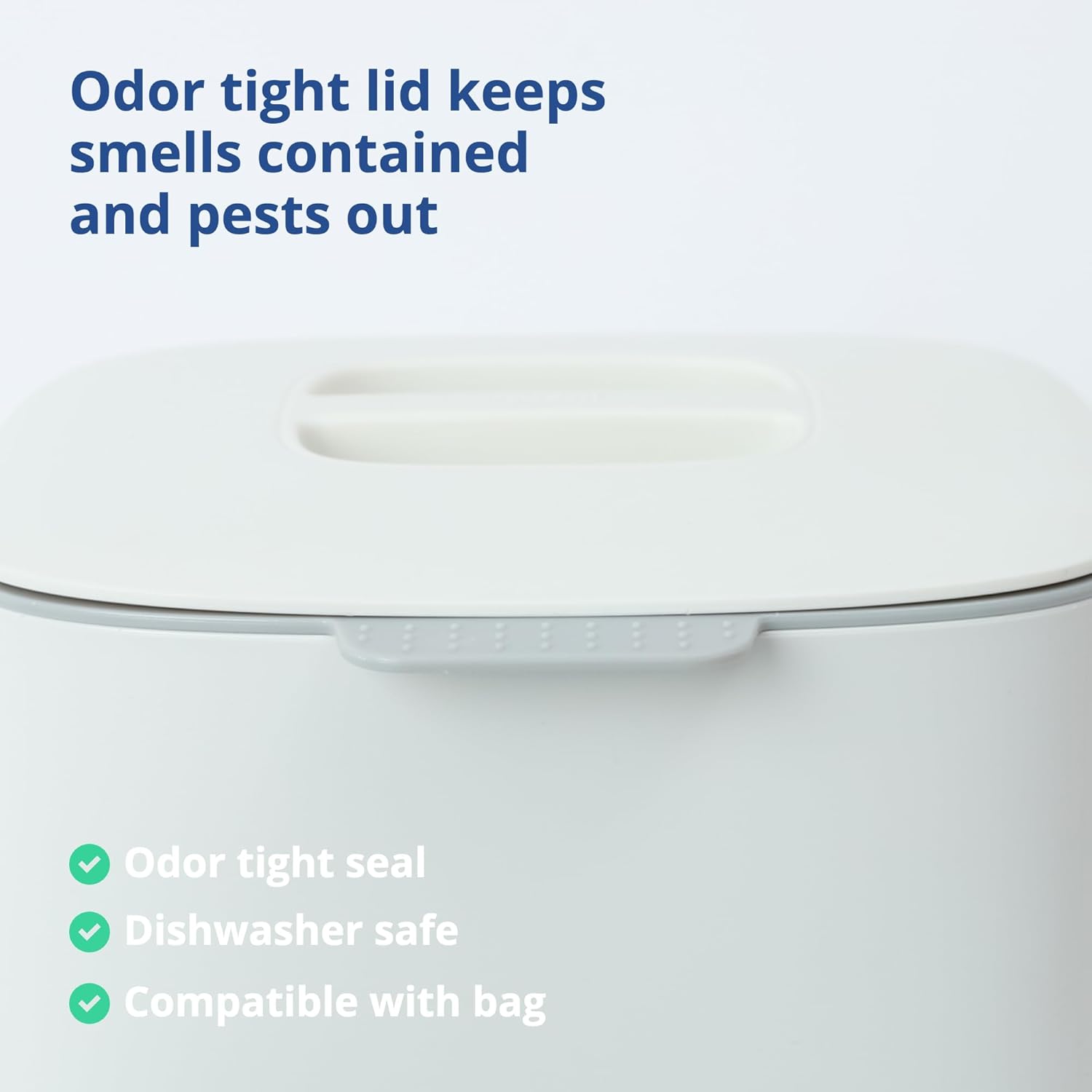 - KEEPS SMELLS CONTAINED - This food waste bin has a modern design that looks great and contains odors without the need for costly charcoal filters.
