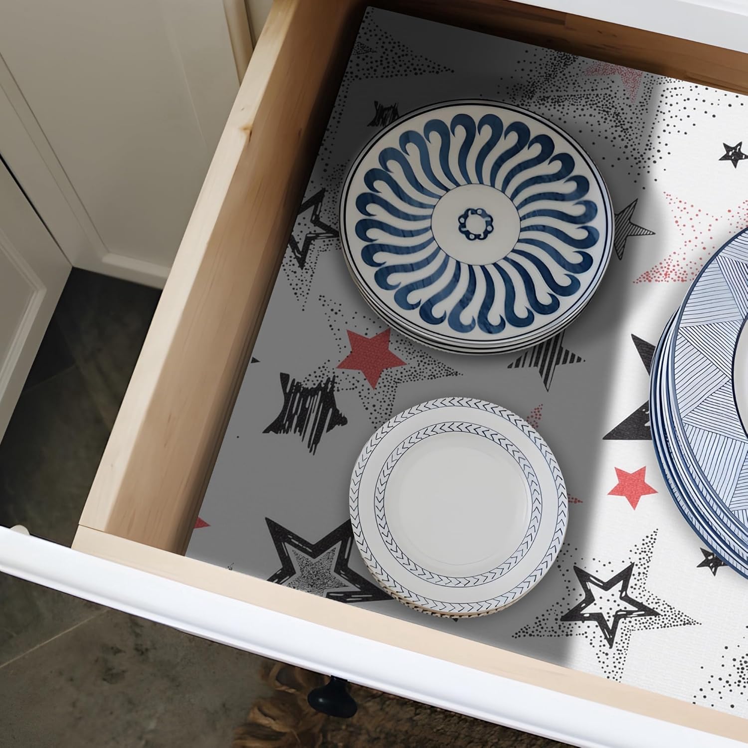 - SHELF LINER: Unique drawer liner design makes you stand out from the crowd of drawer liners. Made from premium thickened material, these non-adhesive shelf anddrawer liners are durable, tear-resistant, and reusable.