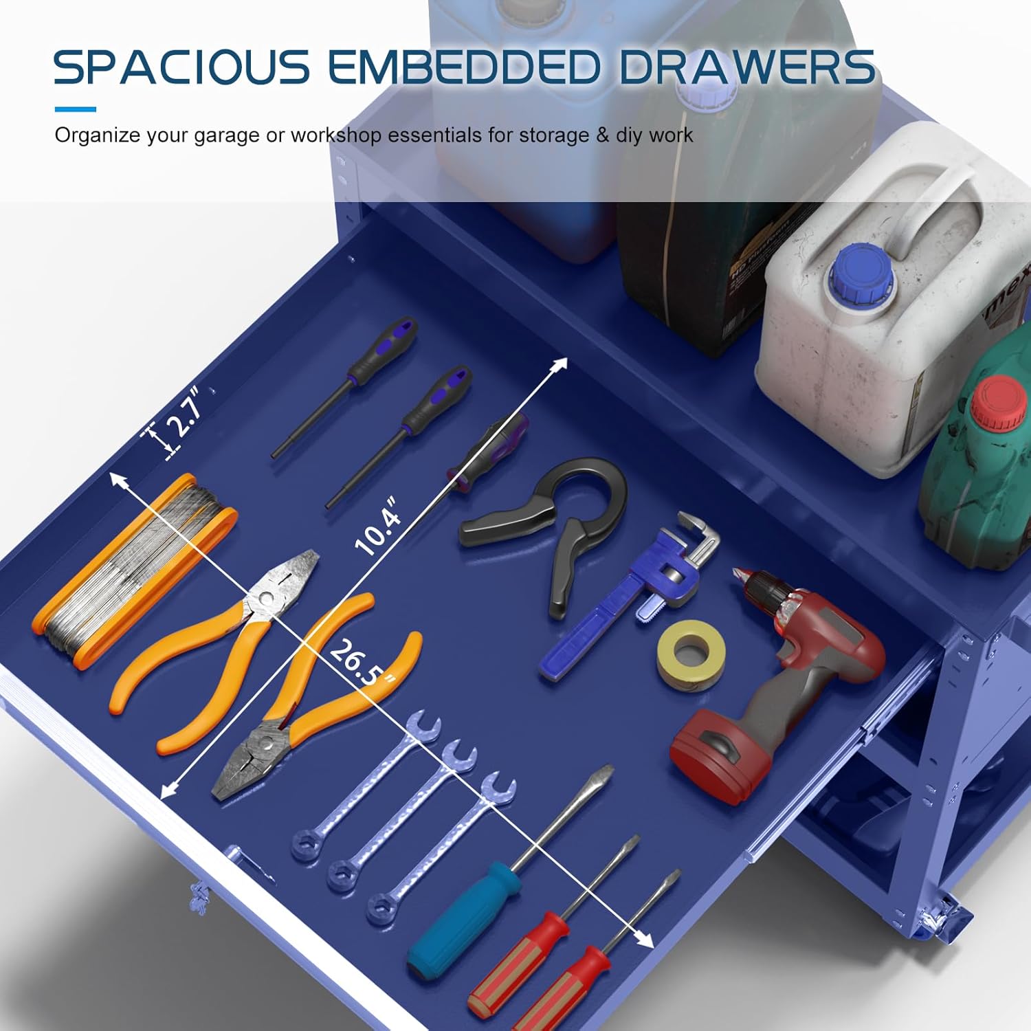 - Ample Tool Organization: Features a pegboard side panel with hooks for wrenches, screwdrivers, and other tools, plus an open shelf design to keep frequently used items within reach. Stay organized and efficient during any project.