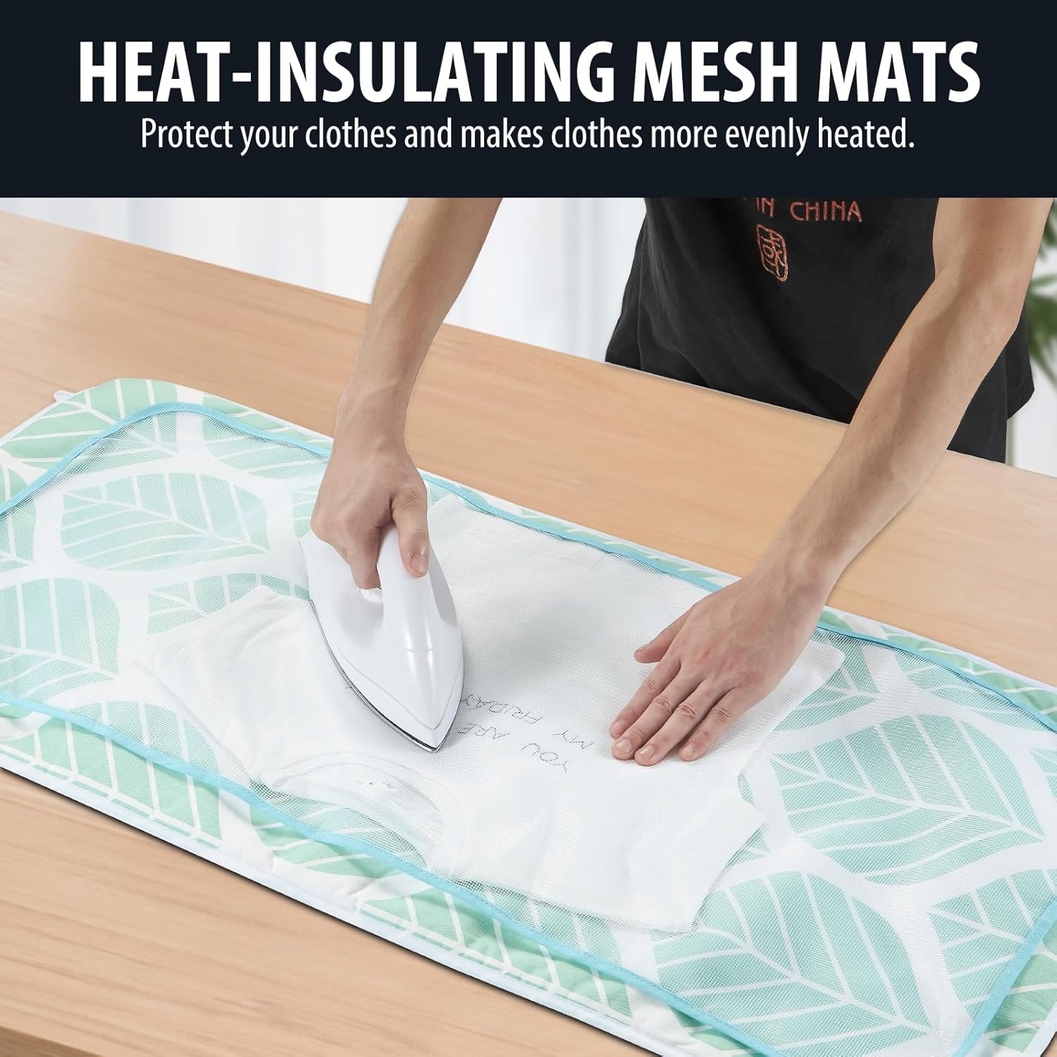 - INSULATION PROTECTIVE MESH: This table top ironing mat comes with a heat insulating and breathable net, meticulous and uniform mesh density makes clothes more evenly heated during ironing, effectively protects your clothes, especially dark clothes and expensive clothes