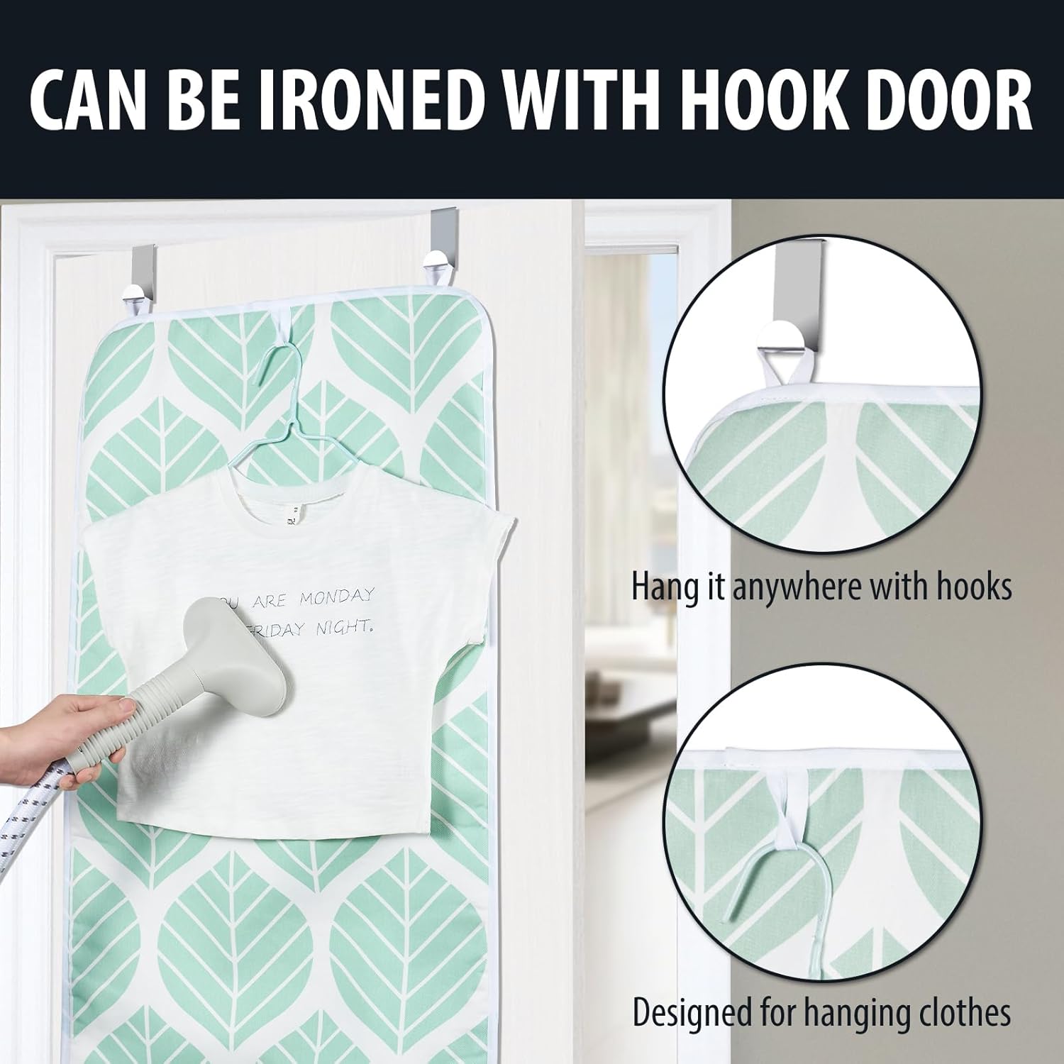 Seiritex Ironing Mat, Portable Ironing Pad 39.4 x 18.9 inch Table Top Iron Board 5 in 1 Travel Iron Blanket for Washer, Dryer, Counter top, Green Leaf